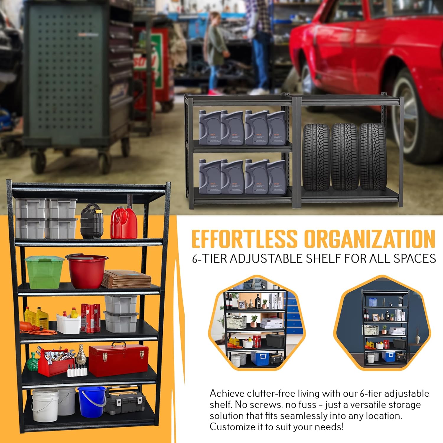 Rigma 5 Tier Garage Shelf, Heavy Duty Steel Shelving Unit, Adjustable Metal Multi-use Storage Rack, Shelves for Garage, Basement, and Industrial Warehouse Or Office (48" W X 20" D X 78" H 6-Tier)