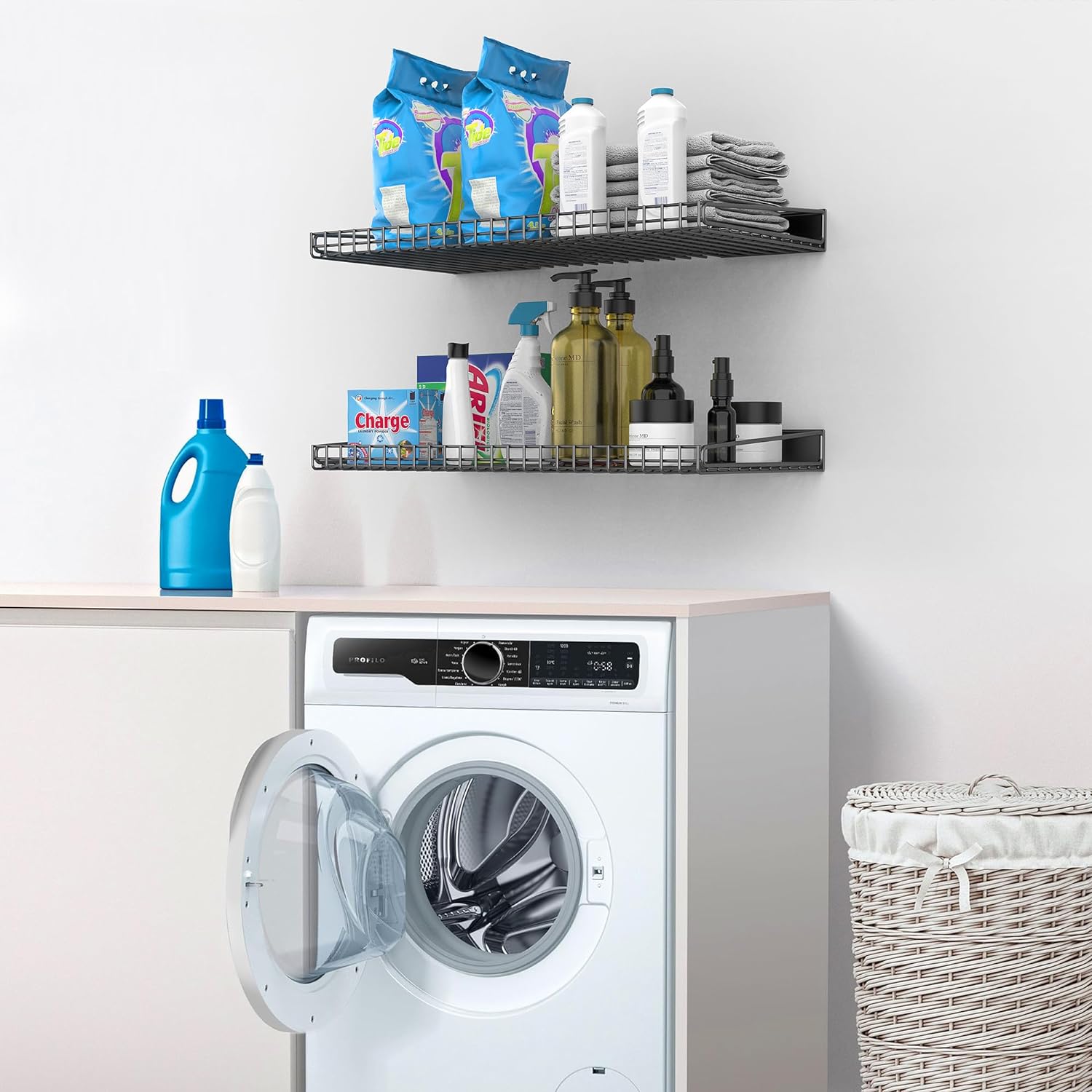 - Heavy-Duty Construction: Garage Shelving is constructed with high-quality materials, ensuring durability and stability. The heavy-duty design can bear a load capacity of 100 lbs for each wall shelf, making them ideal for storing bulky items such as power tools, paint cans, or gardening supplies