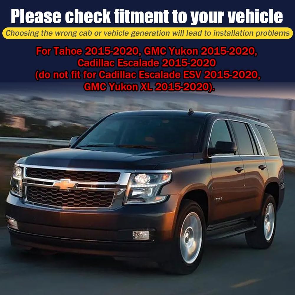 • Attention! side window wind deflectors & visors custom fits only for Tahoe 2015-2020, GMC Yukon 2015-2020, Cadillac Escalade 2015-2020 (do not fit for Cadillac Escalade ESV 2015-2020, GMC Yukon XL 2015-2020).