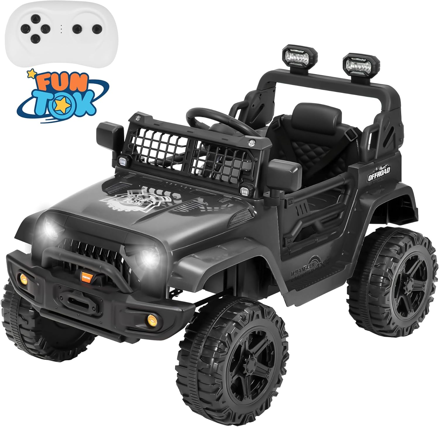 12V Ride On Truck for Kids, Electric Cars for Toddlers w/Remote Control, Soft Start, LED Lights, Horn, Radio, USB/AUX/MP3, Battery Powered Cars for Kids to Drive (Black)