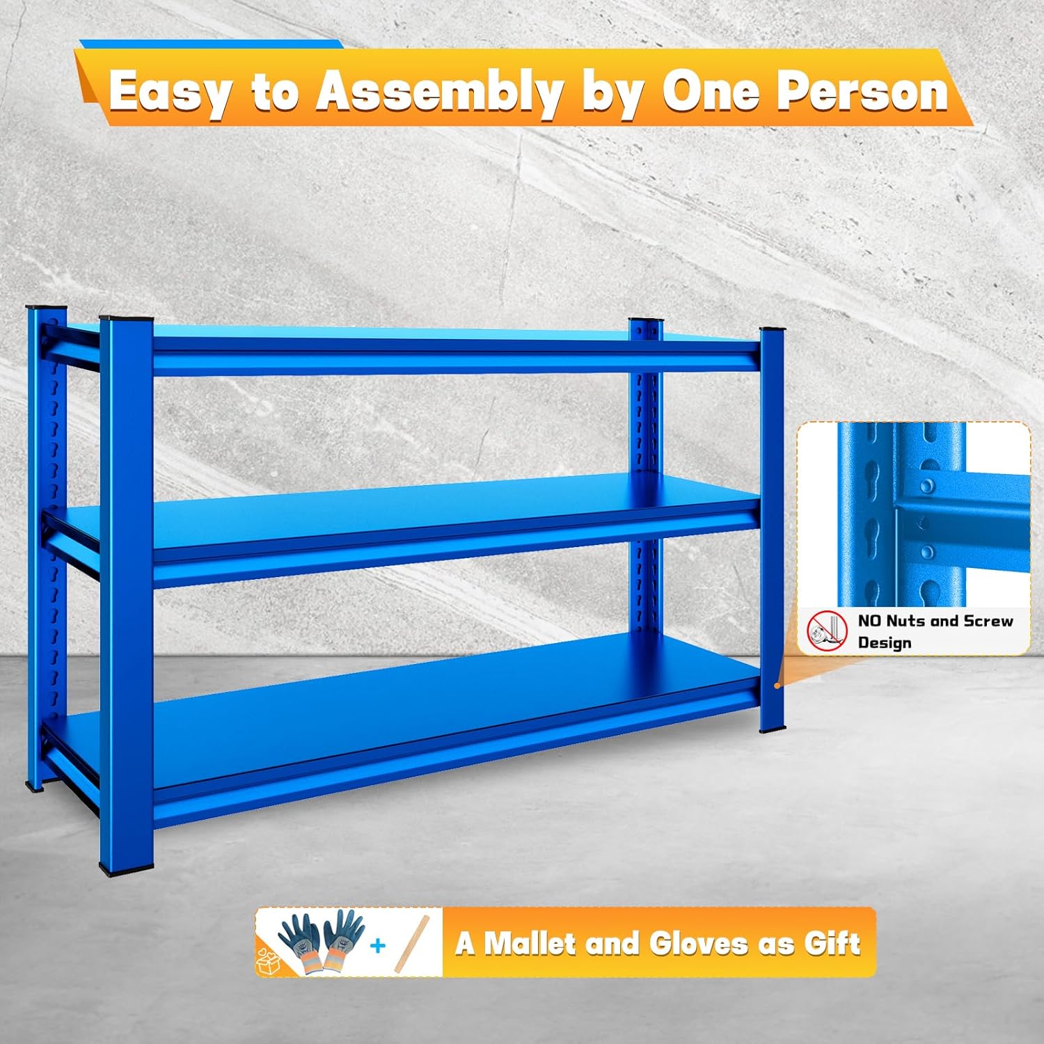 - ✅【Easy to Assemble】The unit assembles with no screws or separate parts. The package came with everything that was needed to put it together. A small mallet for "encouraging" the shelves to lock into place and gloves to protect against some rather sharp edges.