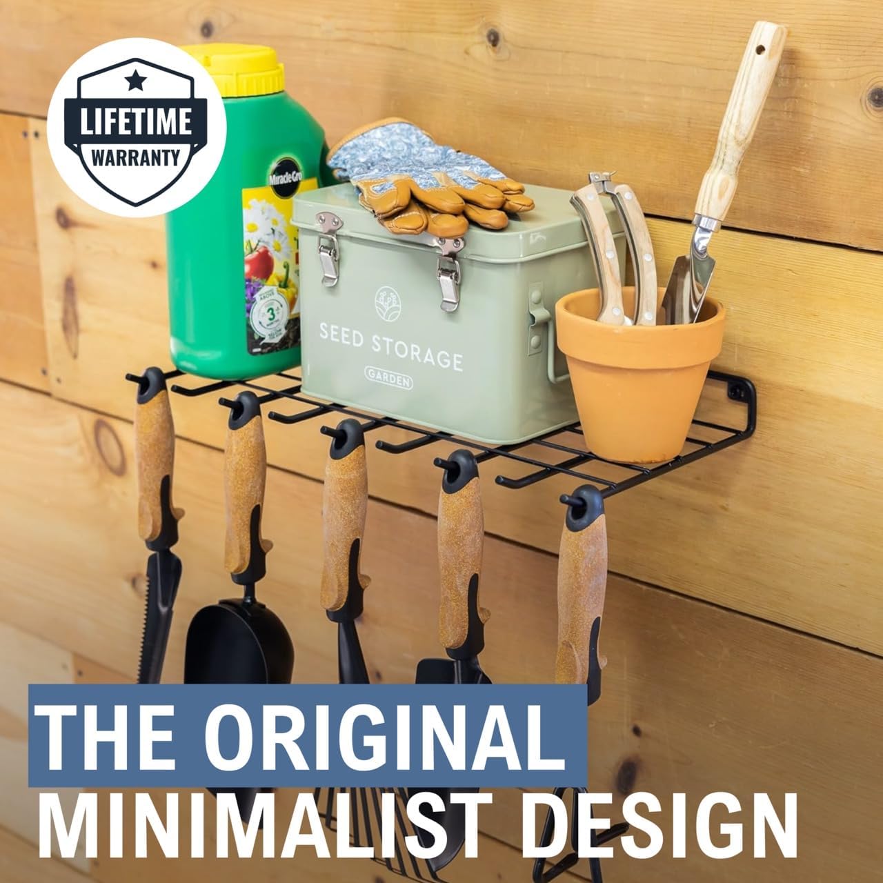 - Gardening Supplies Storage – The Afton Wall Organizer combines a rock-solid wall shelf and hanging hooks for storage of your outdoor tools and supplies. Perfect for your garden shed or garage.