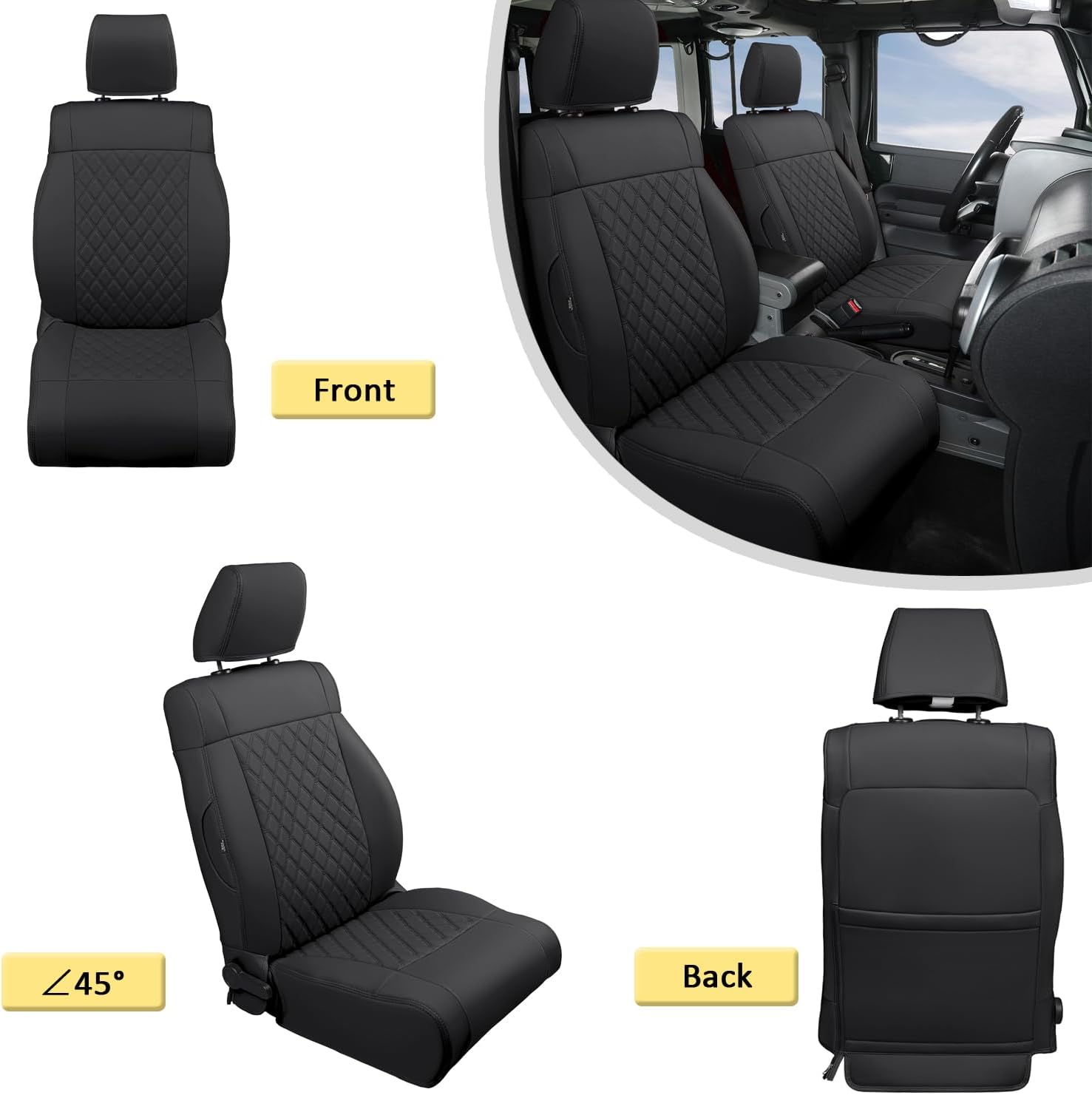 - ăCUSTOM FITă - A full set of seat covers customized according to the original car seat size 1:1, which will fit Wrangler JK 4-Door 2008 2009 2010 like a glove.