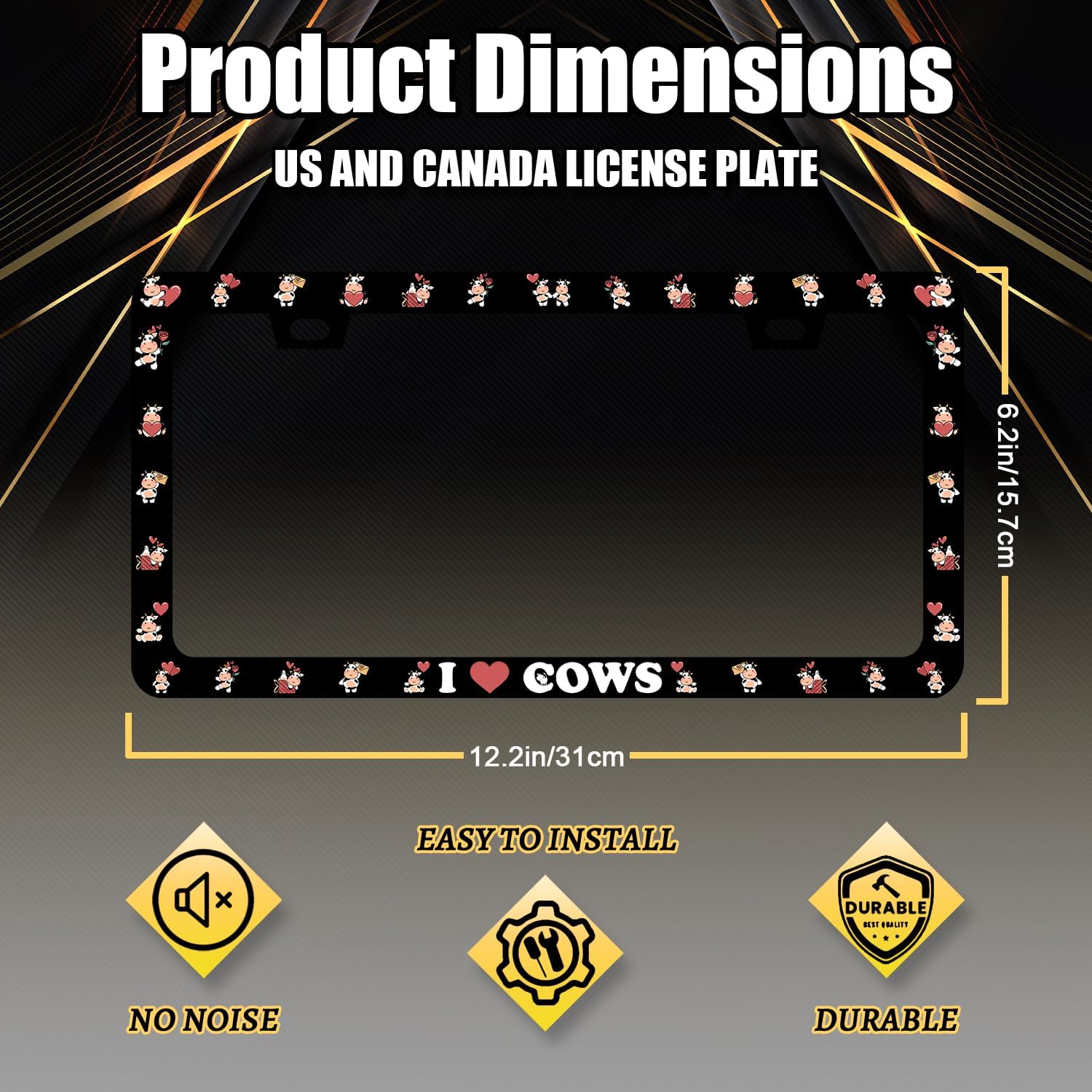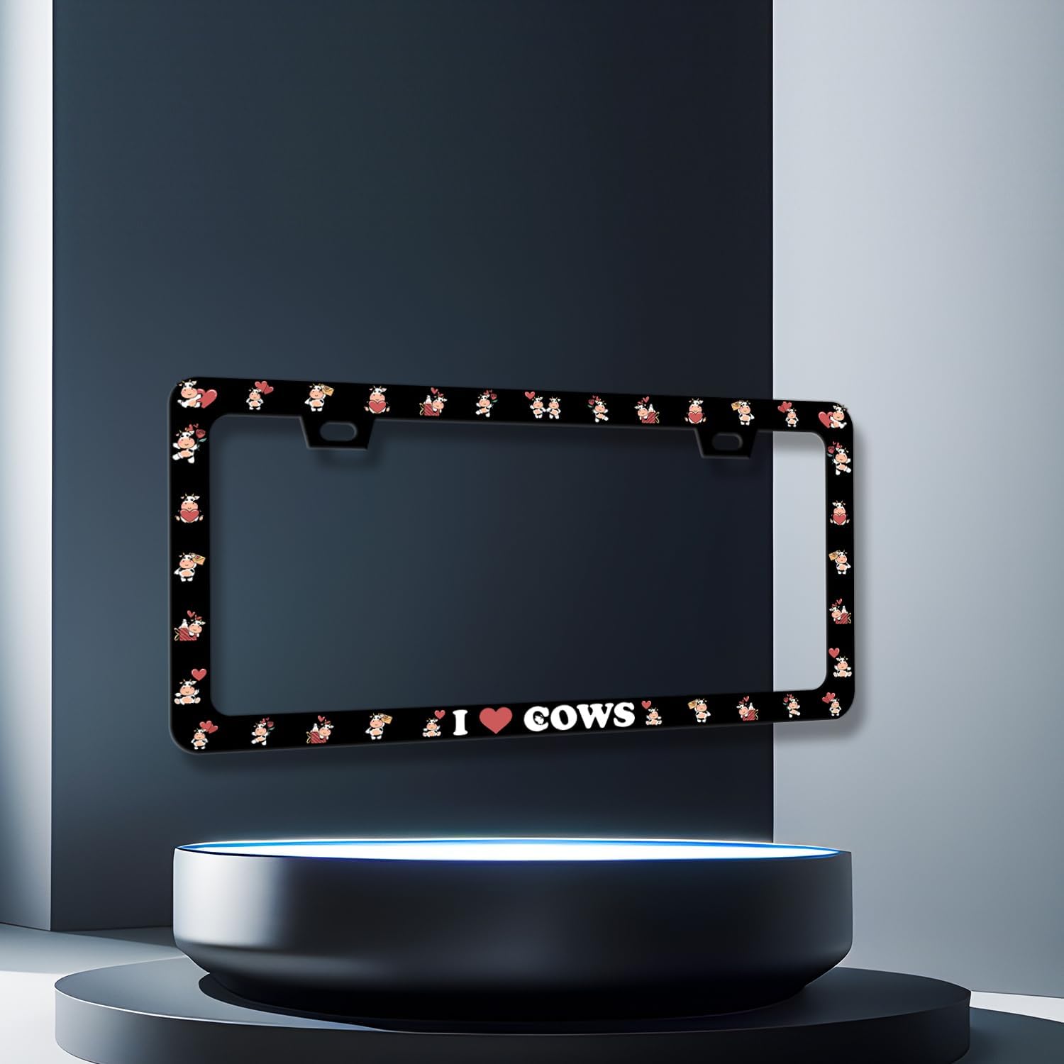 Cow License Plate Frame Cute I Love Cows License Plate Holder for Personalized Colorful Animal Car Decorative Stainless Steel Funny License Plate Cows Auto Part with Screws 12.2" x6.2"