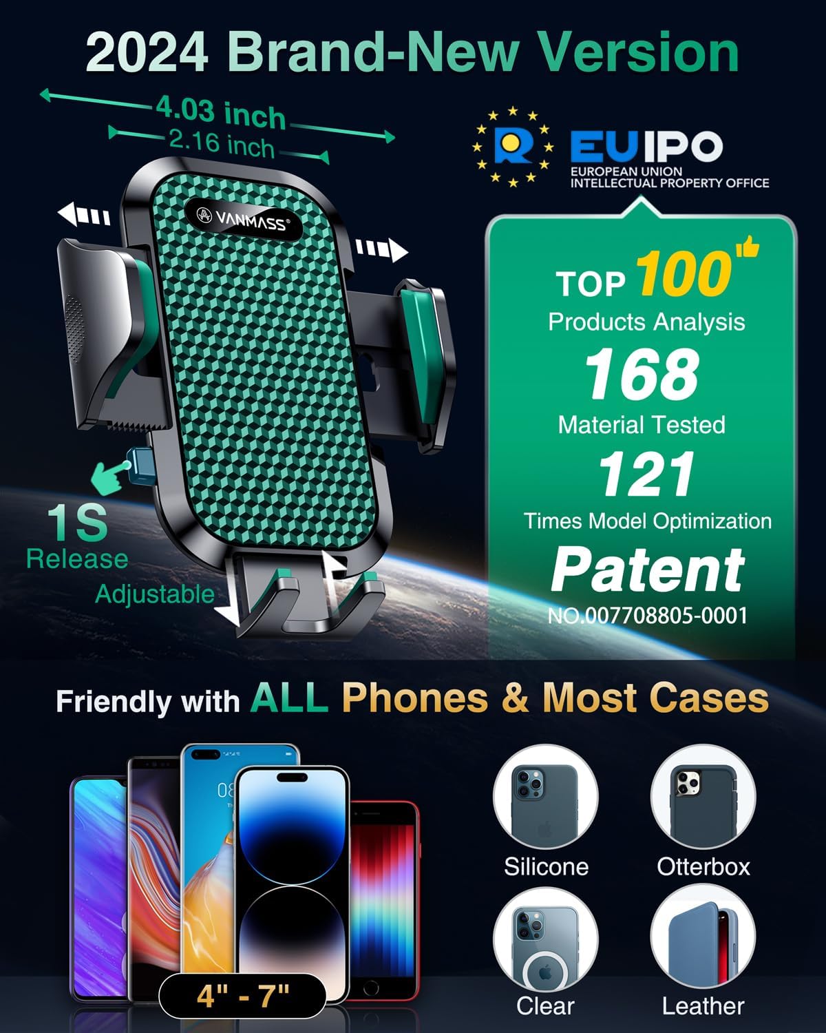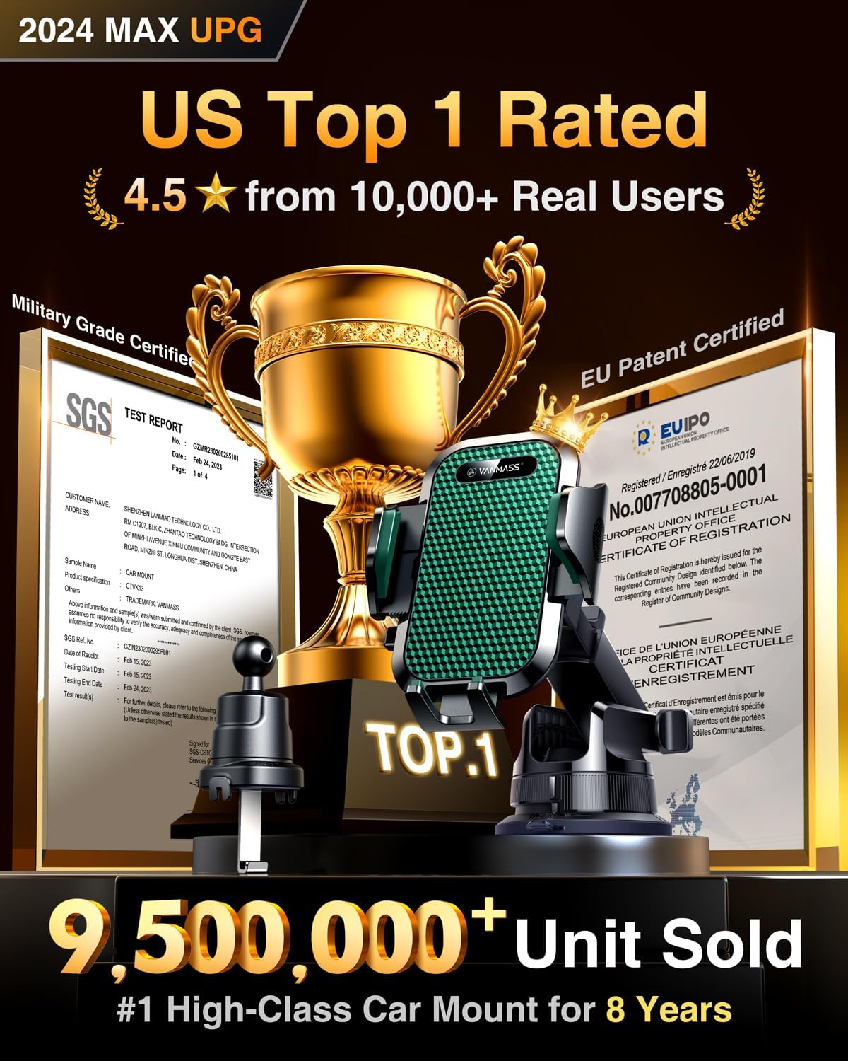 - ăTrue Military-Grade Certified, Durable & Stable Dual UpgradeăVANMASS, the leader in high-end car phone holder. Over the past 8 years, We have listened to the voices of millions of users, rigorously tested to MILITARY GRADE standards (stability, compatibility, flexibility, security, durability). Finally, we overcome all weaknesses to design the BEST Model that we are most satisfied with. This item obtained military-grade shockproof certification No. GZMR220601855501 and patent No.007708805-0001