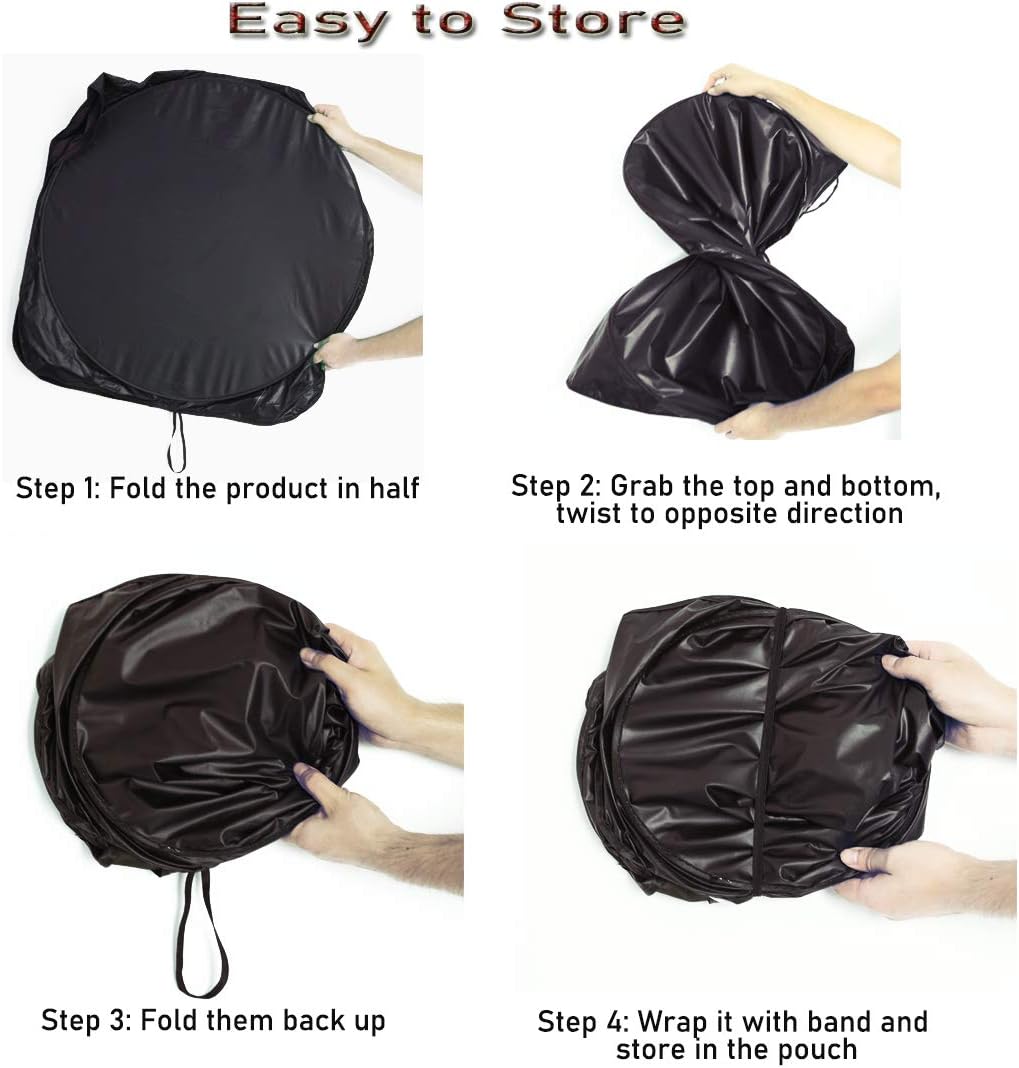 - Easy to Fold and Store- windshield sunshade easily pops out and folds back in seconds. Storage bag included. It can be stored in the door pockets of your auto vehicle.
