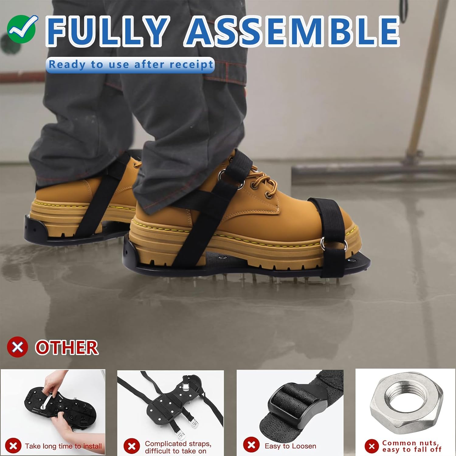 Epoxy Shoes, Fully Assembled Gunite Spiked Shoes with 3/4" Short Spikes for Epoxy Floor Coating, Self-Leveling Floor, Epoxy Garage Floors, Overlays, Cover Installation