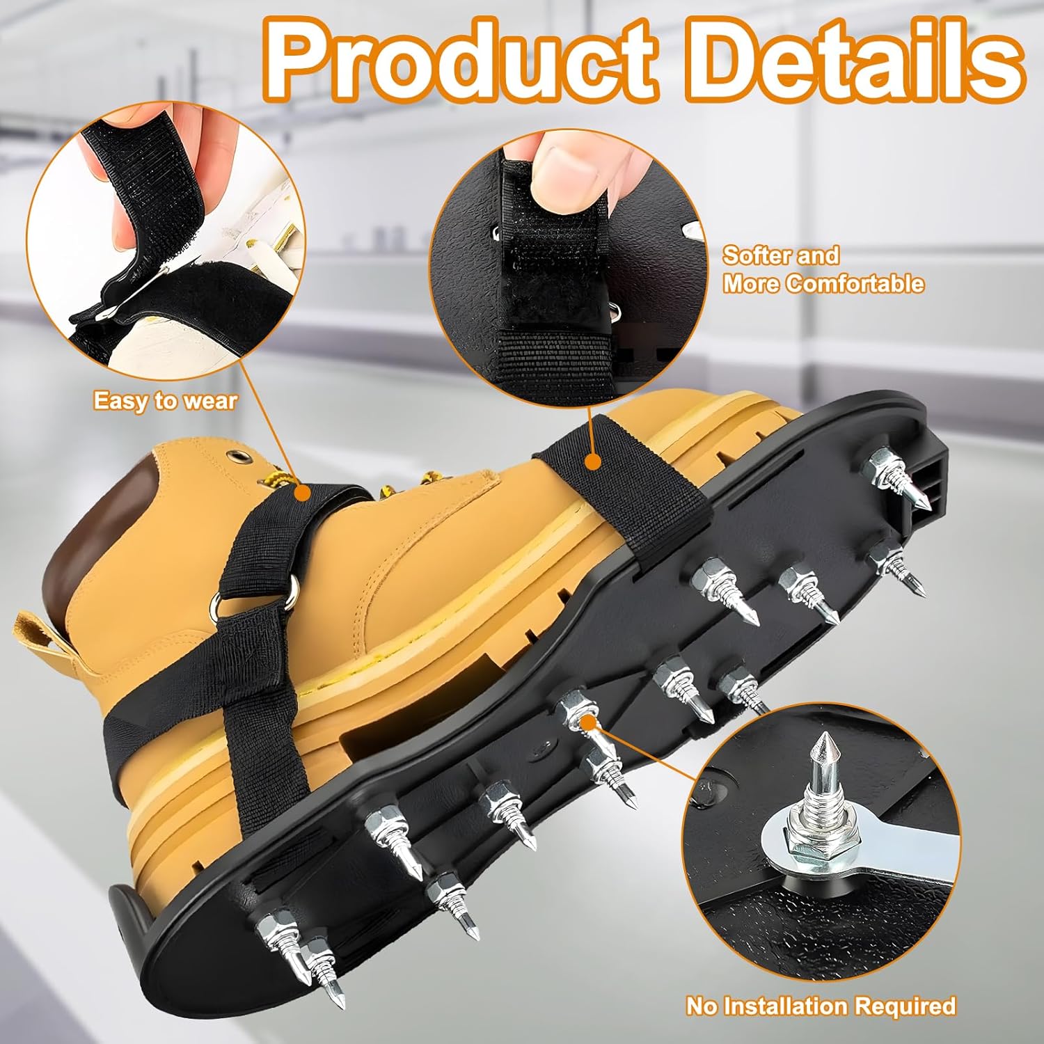 - Large Size: The bottom of the epoxy spike shoe is 13.4*5.2 inches, with adjustable straps can accommodate all ordinary shoes, sports shoes or work boots. Note: Not suitable for less than 11 yards.The Velcro straps can be adjusted to ensure that the shoes stay firmly on your feet.