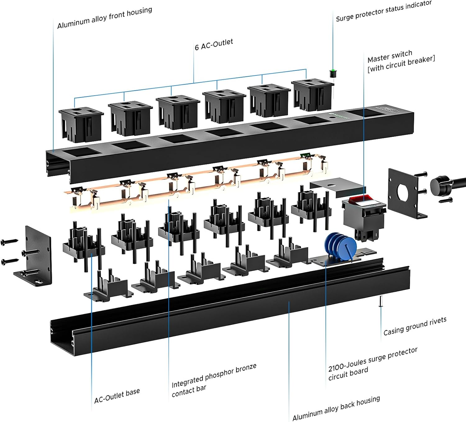 - [All-round Protection] 2100 joules of protection to protect your electronics from damage due to surges, spikes, or outages. 15 Amp circuit breaker is equipped to instantly react to catastrophic events and overloads, providing maximum protection, SGS Certification.