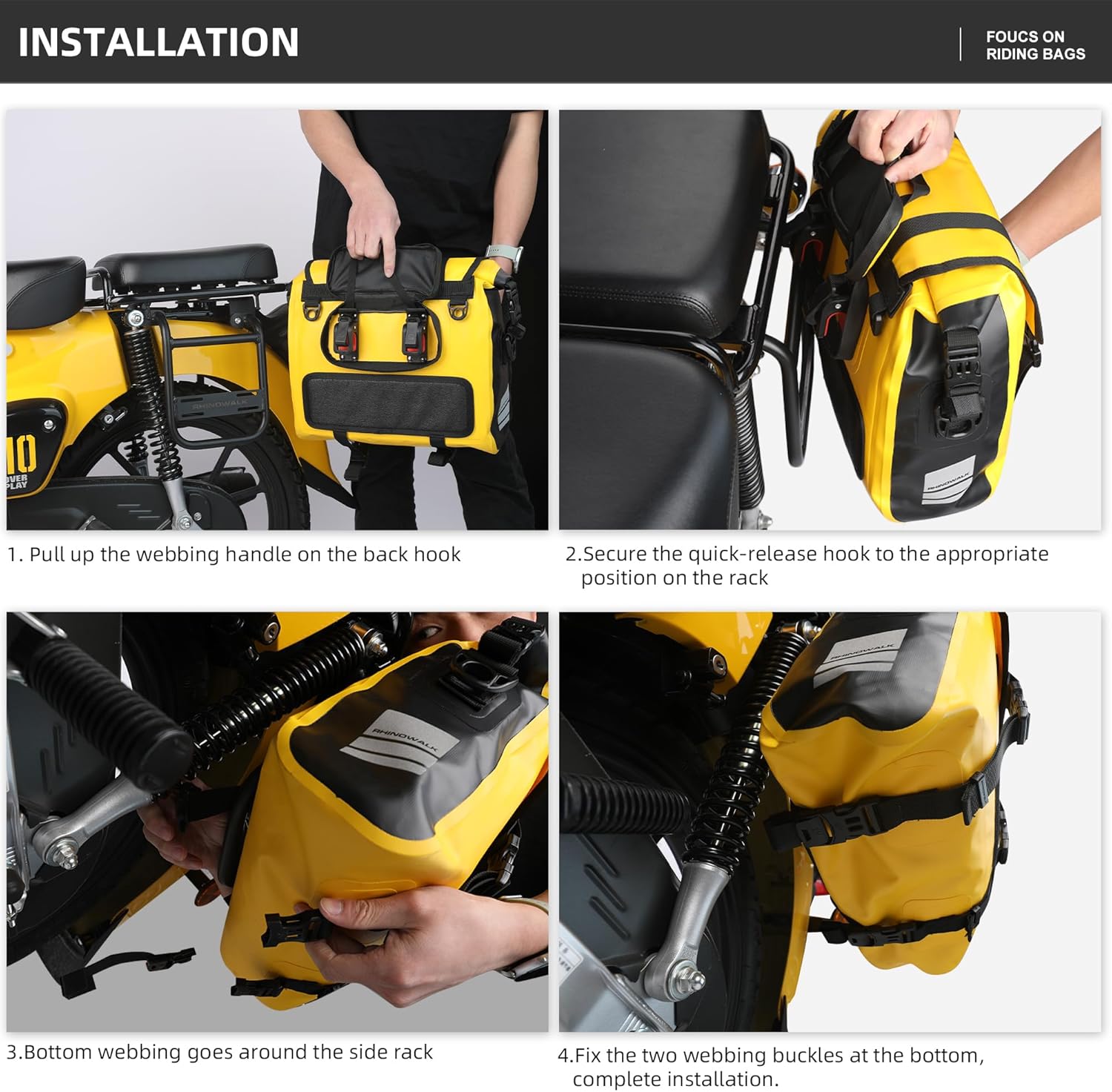 Rhinowalk Motorcycle Saddlebags, Waterproof Saddlebags, Quick Release 15L Single Side Hanging Bag Motorcycle Accessories