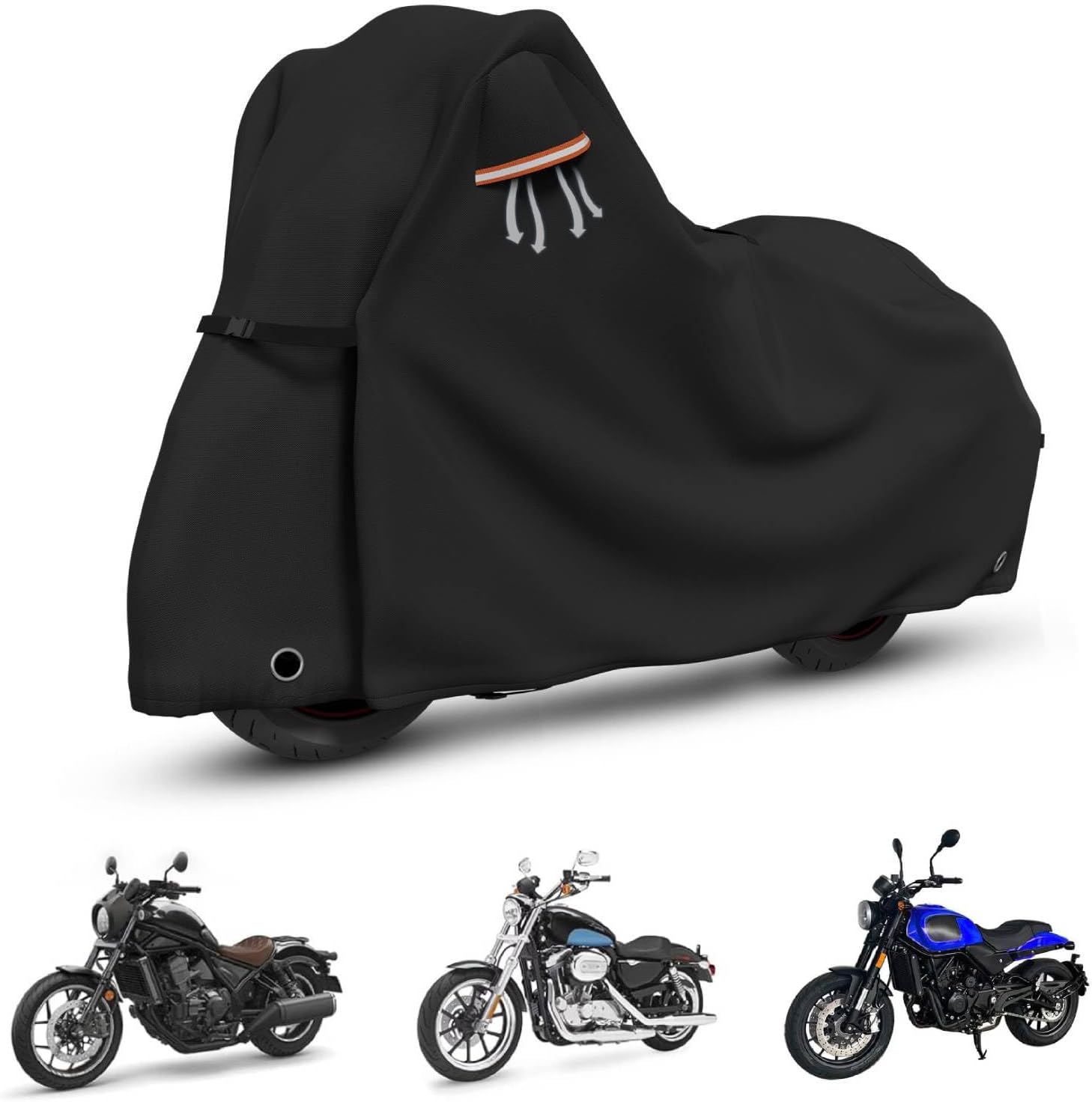 STARTWO Motorcycle Covers Waterproof Outdoor Storage Heavy Duty All Season Universal Vehicle Cover for Harley Davidson XTM 350, XTM 500, Nightster, Sportster and Most Motorcycles 86"x41"x50" Black