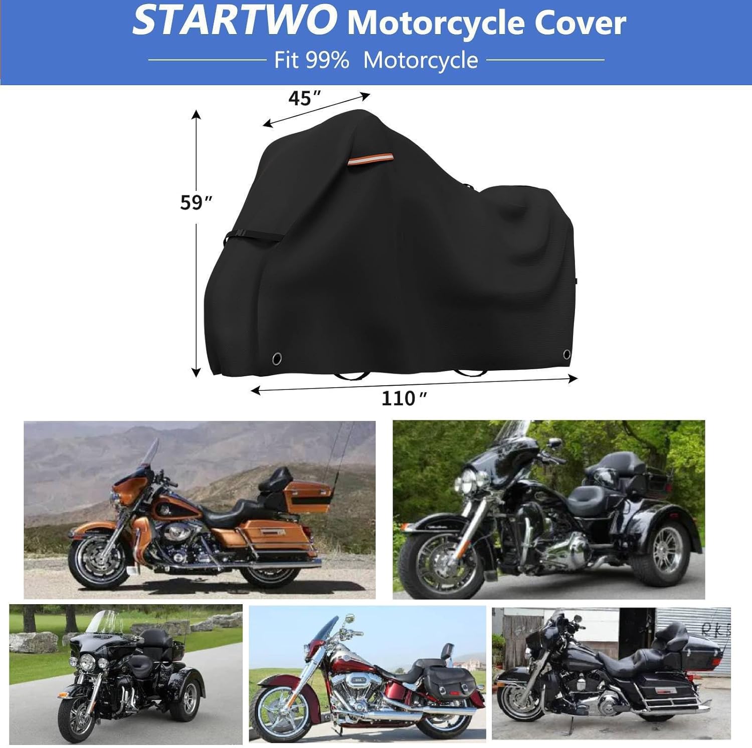 STARTWO Motorcycle Covers Waterproof Outdoor Storage for Harley Davidson Touring Models with Side+Top Box Ultra Limited,Road Glide Limited, Gold Wing,Road Master 110"x45"x59" Black