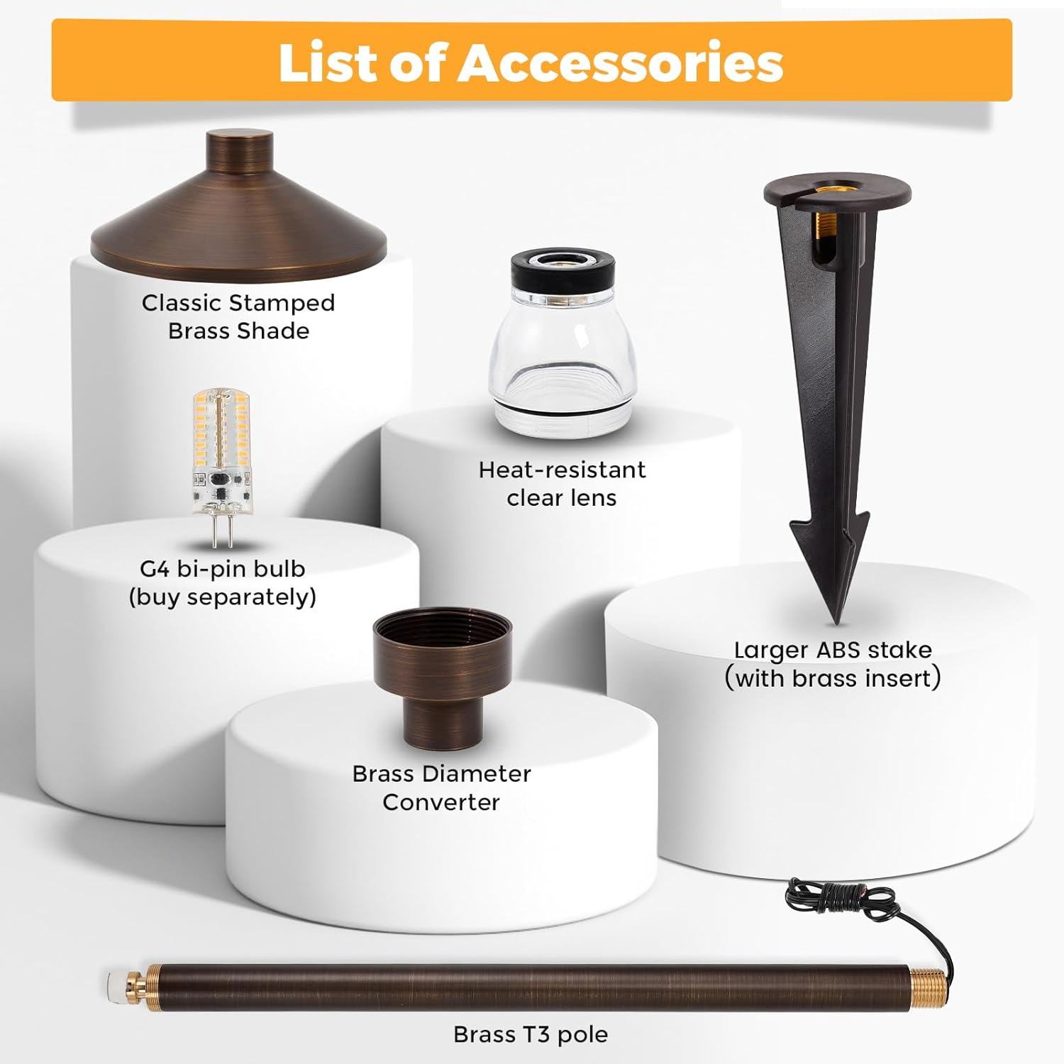 - FULL BRASS HOUSING AND LARGER ABS STAKE: New and improved design from Gardencoin, 63% copper, heavy-duty construction, strong and durable landscape path light with large ground stake to keep it upright and not tilted