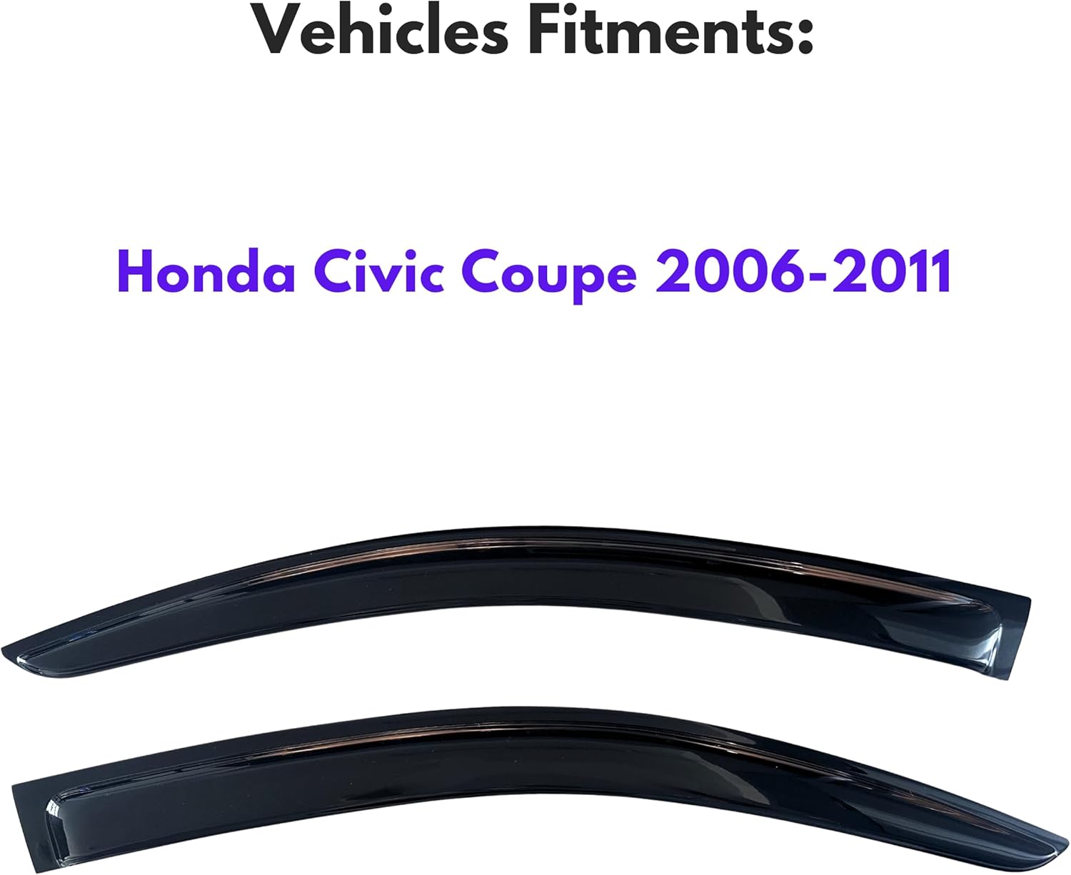 - 【Perfect Fit】KPY window visors rain guards vent deflectors compatible with Honda Civic Coupe 2006 2007 2008 2009 2010 2011