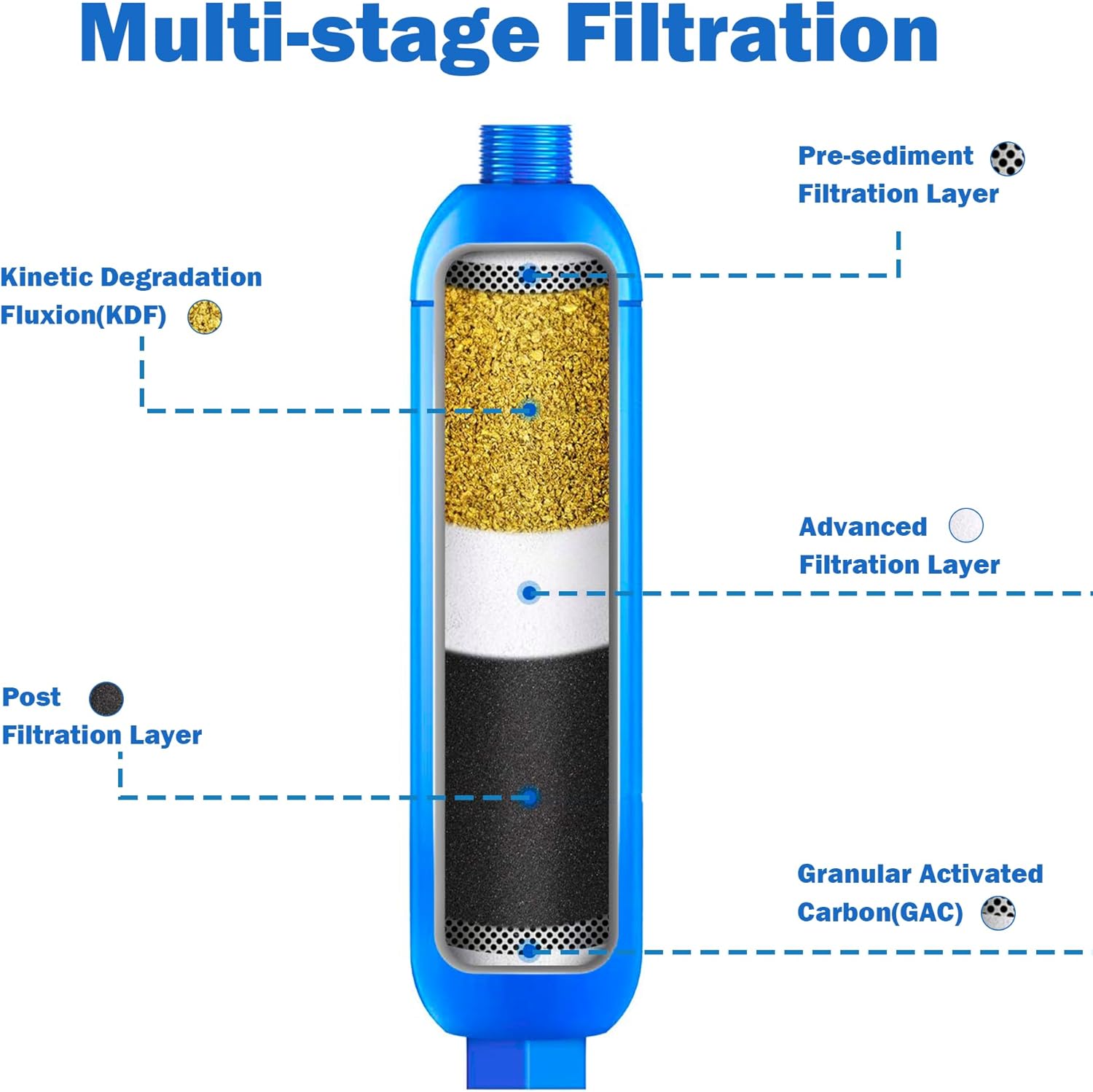 - Essential Water Safety: Bid farewell to undesirable tastes, odors, chlorine, sediment, and more. The RV water filtration system utilizes GAC filtration combined with KDF to regulate when the filter is inactive. It has a micron rating of 20 microns.