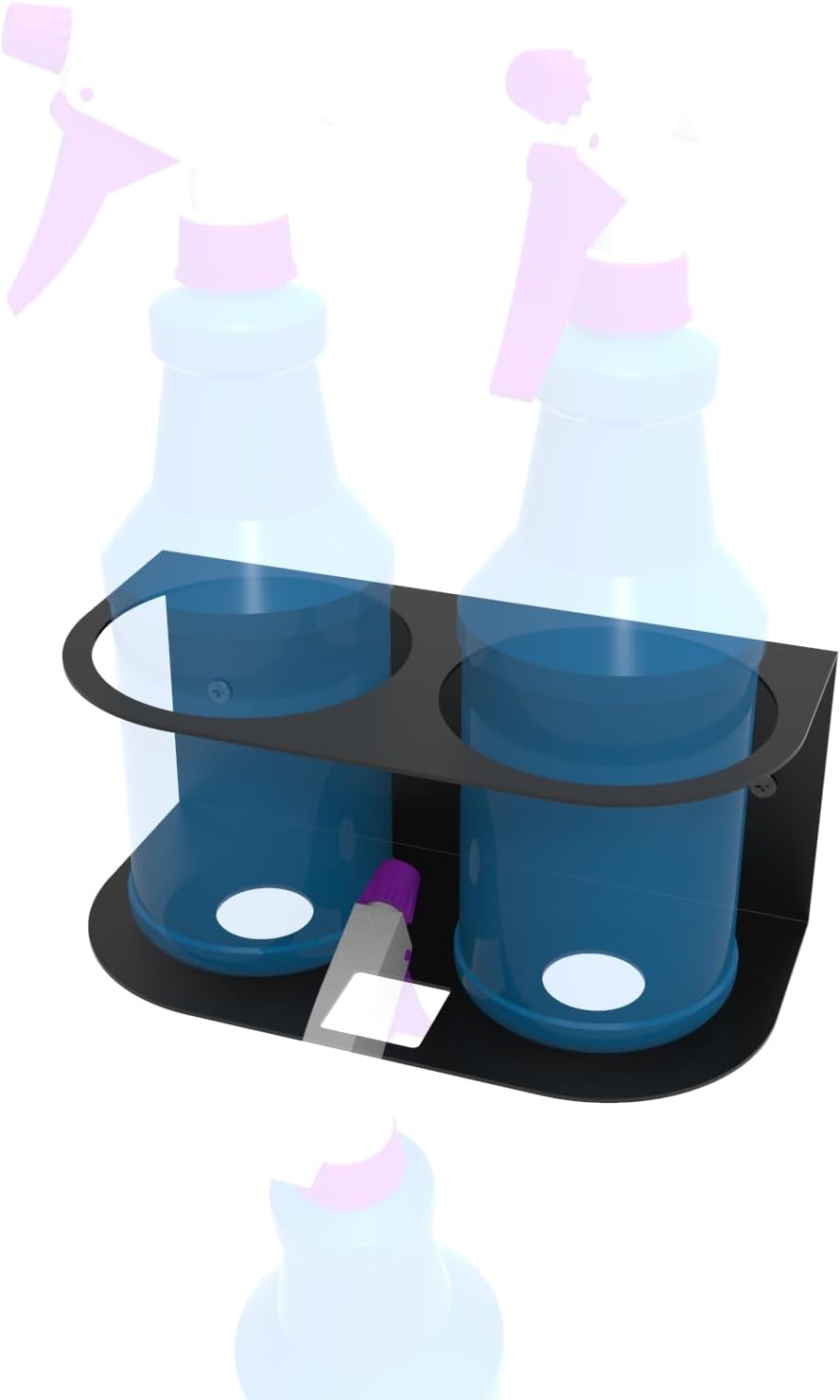 JINGCHENGMEI 2 Spray Bottles Holder, Steel Wall Mount Storage Organizer for All-Purpose at Garage and Home (SBH-2B1Pc)