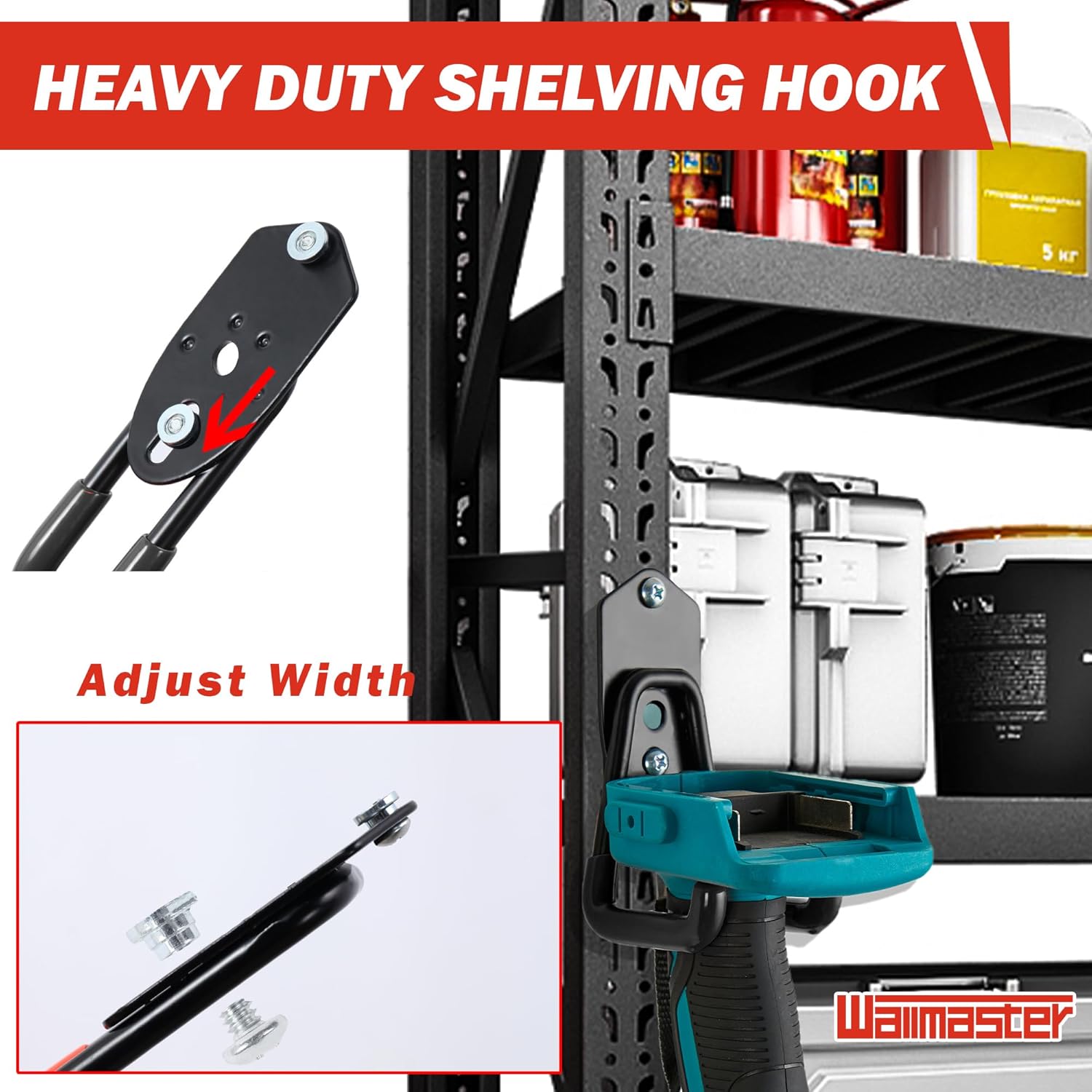 - ADJUSTABLE WALL MOUNT STORAGE HOOKS- With an innovative adjustable design, these sturdy garage storage hooks securely grip shelves or walls, and can be repositioned anytime. The smart mounting system maximizes wall mount storage versatility.