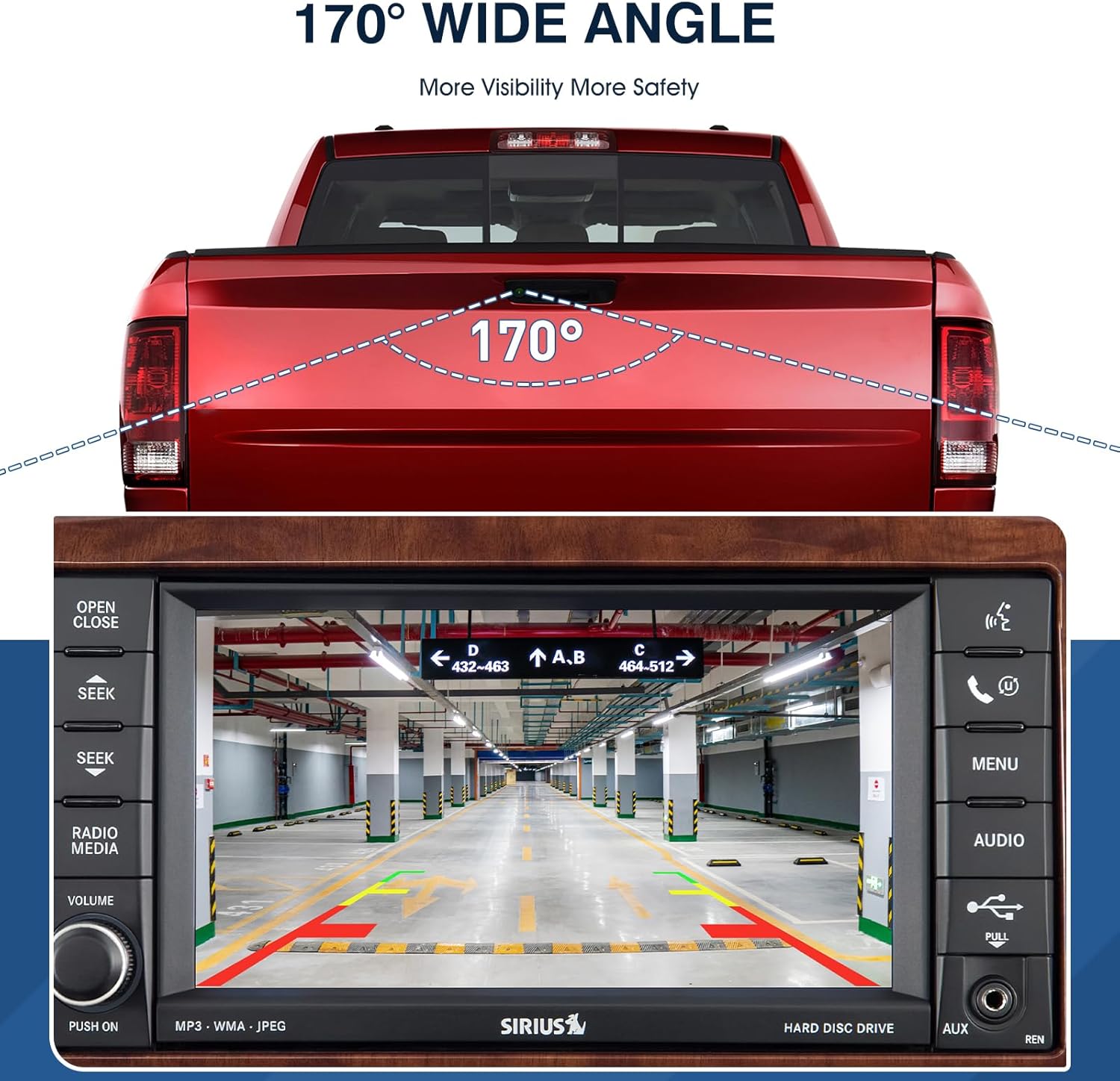 - [Clear Day and Night]: Ram 1500 Reversing Parking Assist Camera made of high quality material and lens, support 170° wide vision and provides the driver with a clear and accurate color reproduction whenever in the day or night.