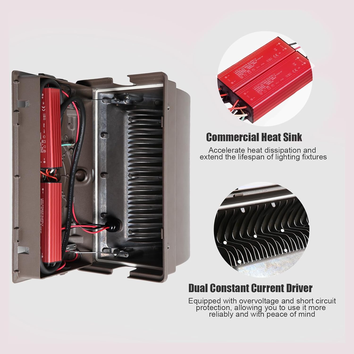 - Super Bright-Wall pack lights outdoor led can achieve 5000K sunlight of 15840 lumens, providing bright and even lighting for buildings or outdoor spaces. The lighting fixtures in large areas should not face the house to avoid causing inconvenience to your neighbors