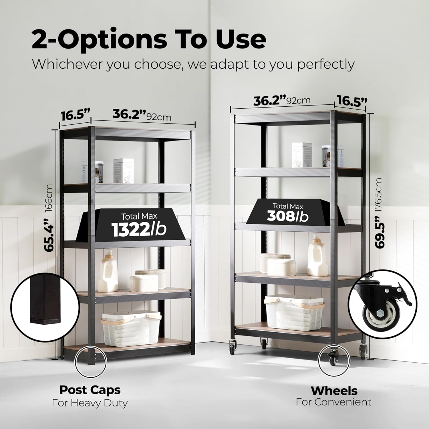 HOMEDANT House 5-Tier Metal Rolling Cart Shelf Rack Casters Heavy Duty Laminated Wheel Shelving Unit Adjustable Utility Storage Shelves Organizer Shelf Kitchen Garage 36.2" W x 16.5" D x 69.5" H 3Pack