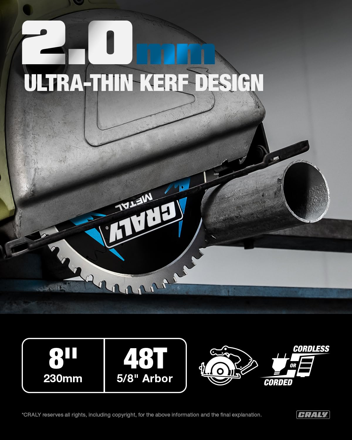 CRALY 8 Inch 42 Teeth Steel and Ferrous Metal Cutting Circular Saw Blade, 5/8 Inch Arbor, Thin Kerf, Professional Carbide Tipped Blade for Angle Iron, Threaded Rod, EMT Conduit(C0842MC)