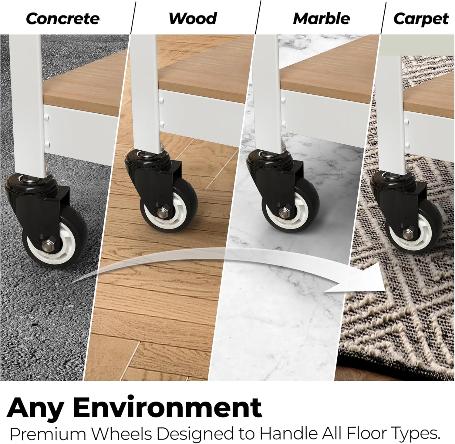 HOMEDANT House White 5-Tier Metal Rolling Cart Shelf Rack Casters Heavy Duty Wheel Shelving Unit Adjustable Utility Storage Shelves Organizer Shelf Kitchen Garage 36.2" W x 16.5" D x 69.5" H 1Pack