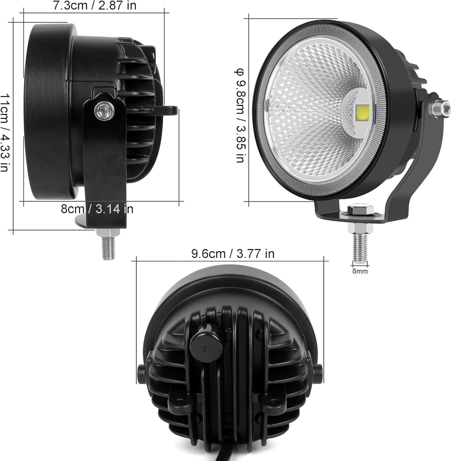 - 【SUPER BRIGHTNESS】 Compare with the same size another work light,this kind light have the most biggest real wattage,advanced High Power Led Chip give out bright and White ray for clear visibility. special designed lamp cup leads to wider illumination range, allowing you to see the left and right side clearly.