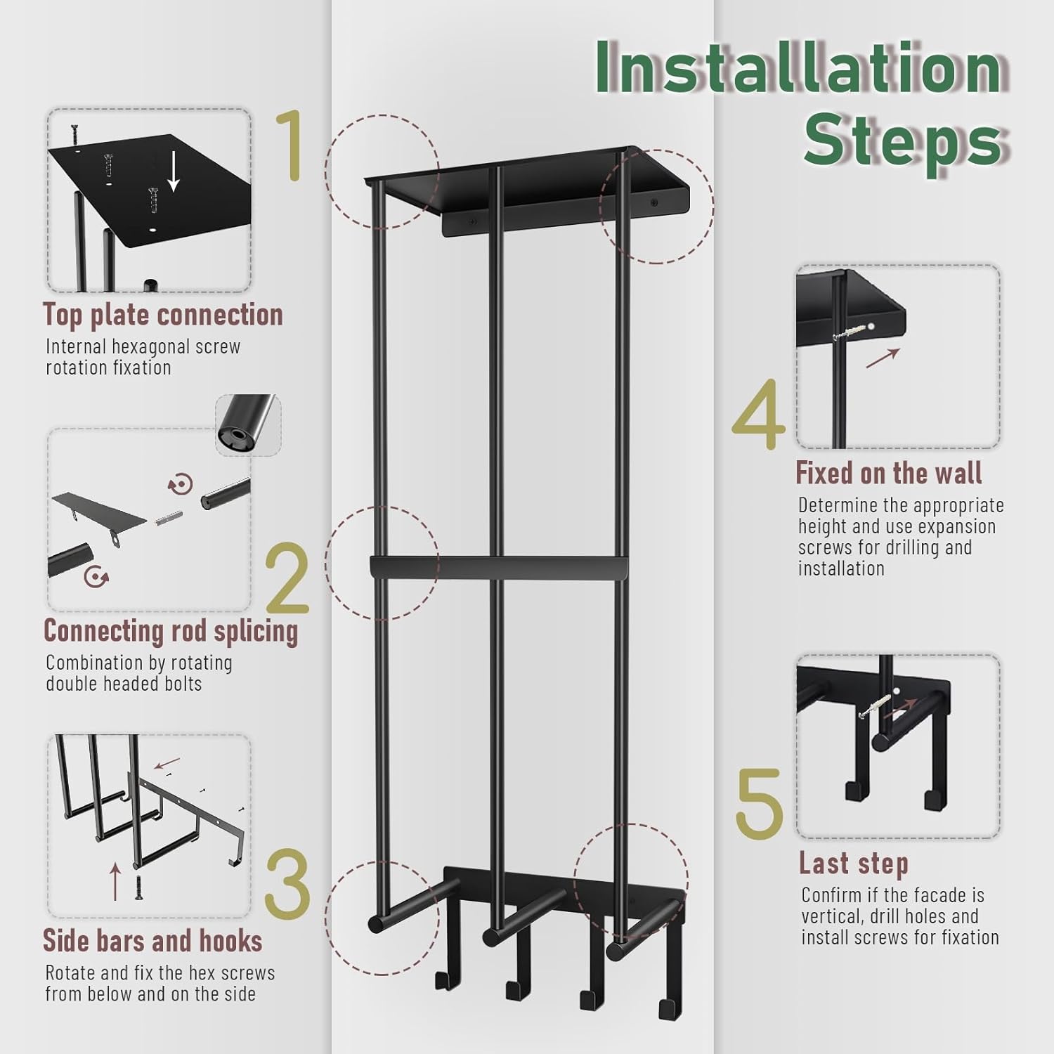 - High-quality metal material: The garage wall-mounted storage shelves are made of thickened high-quality metal and painted to ensure long-term durability and safety. Supported by multiple iron rods, it is more durable than other camping racks