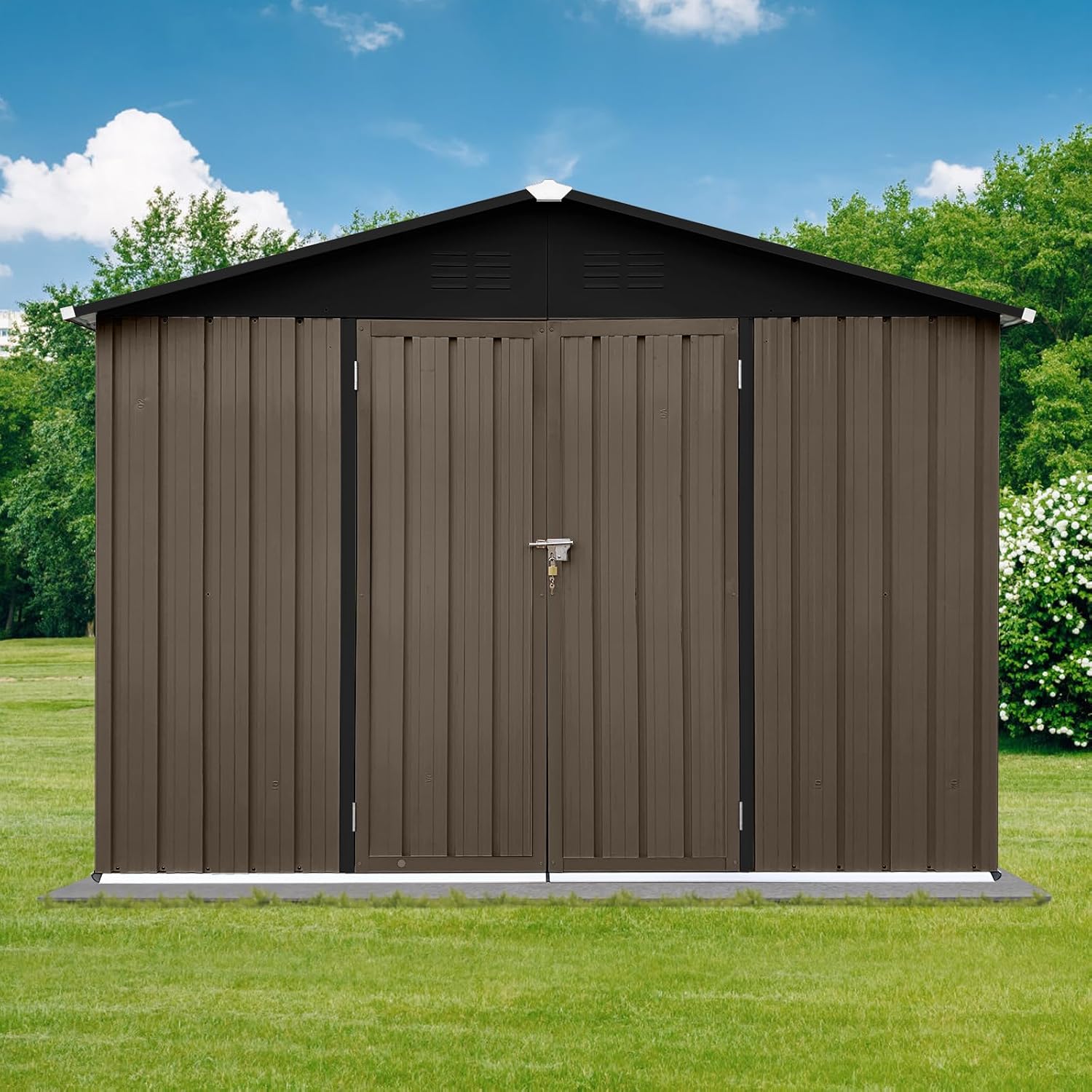 - [Punched Vents] Unlike typical sheds with plastic vents, this shed comes with two integrated punched vents which will not deteriorate against sunlight.