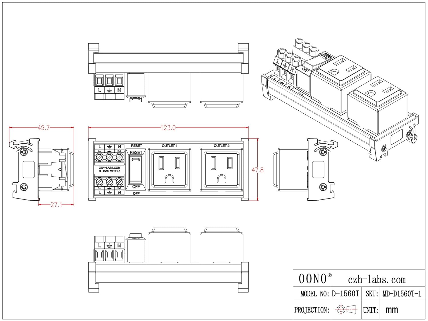 - UL CE certified DIN rail nylon material mount carrier. UL 94-V0 certified FR-4 fiberglass material PCB. UL CE CQC certified terminal blocks. UL certified NEMA 5-15R receptacle. UL certified circuit breaker.