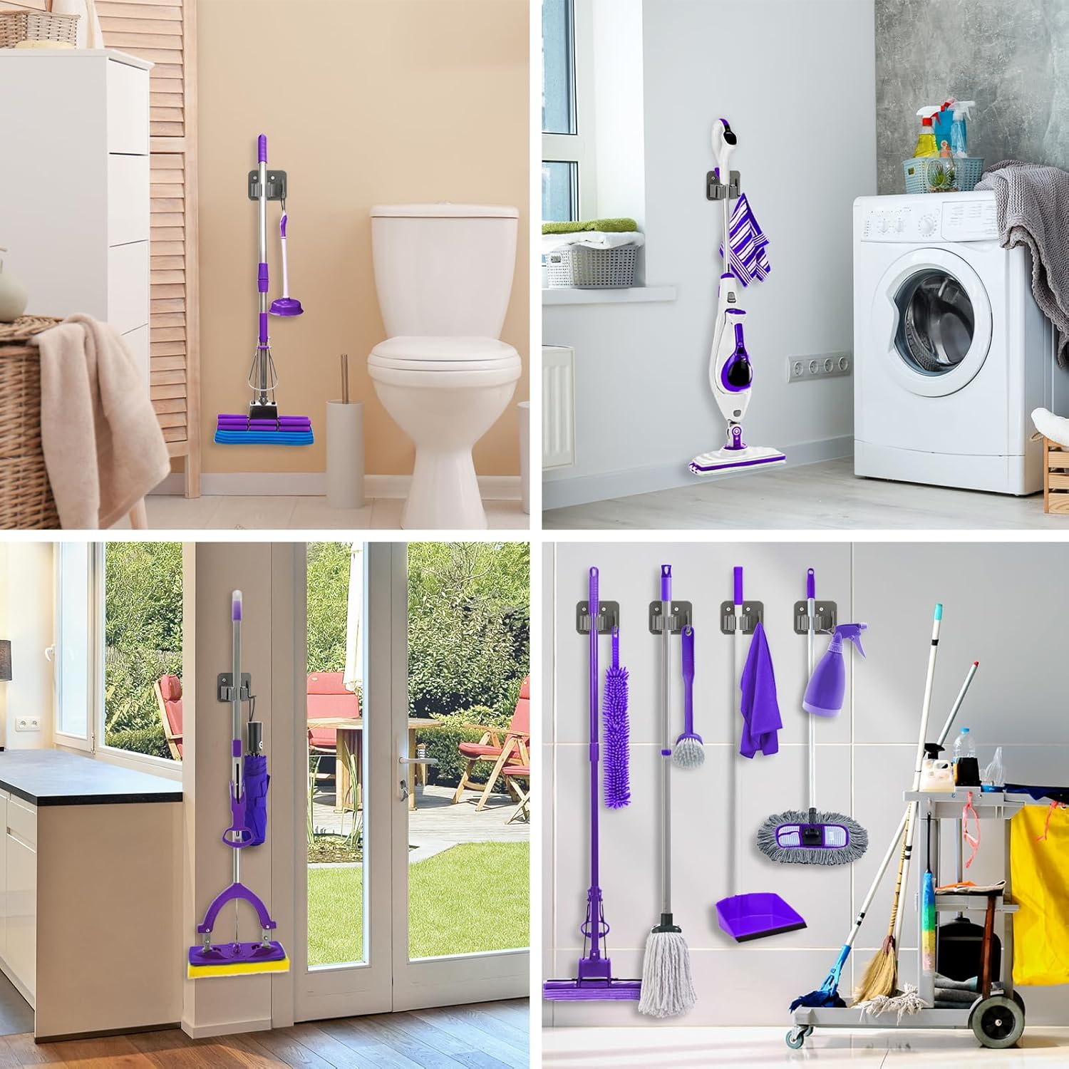 - Application - Various Usage of Mop Rack Wall Mount, Not Only for Hanging Mop and Broom, but Also for Hanging Different Kinds of Small Items Such as Repair Tools, Umbrellas, Kitchen Supplies.Toilet Brushes,etc