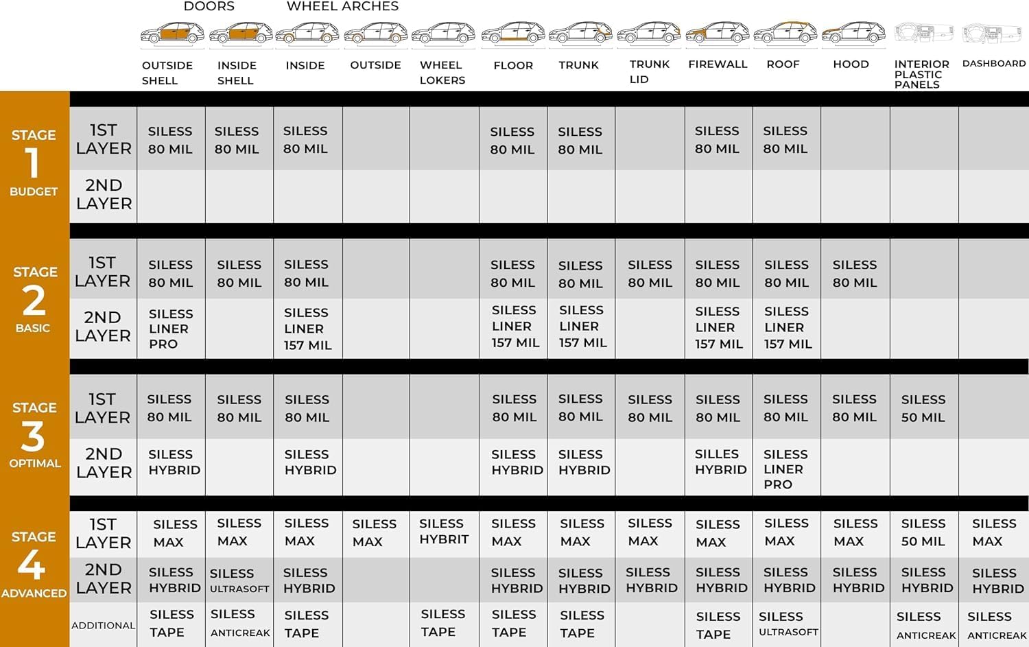- β Advanced Formulation - SILESS VIBRO Damping Material consists of newly invented Bmastic, technologically most advanced and efficient sound deadening composition on the market today.