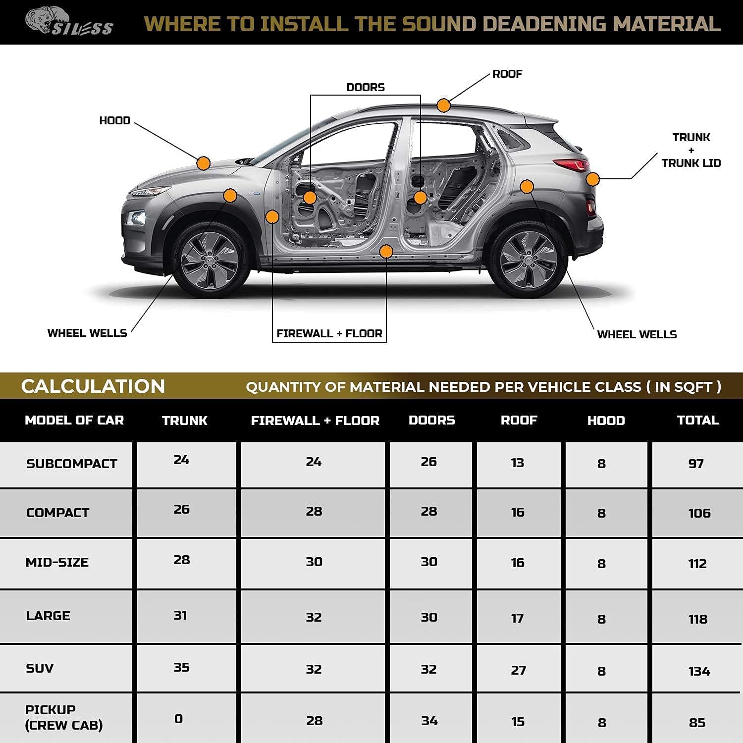 Siless 80 mil (2mm) Car Sound Deadening mat - Butyl Automotive Sound Deadener - Noise Insulation and Vibration Dampening Material 5 sqft (0.46 sqm)