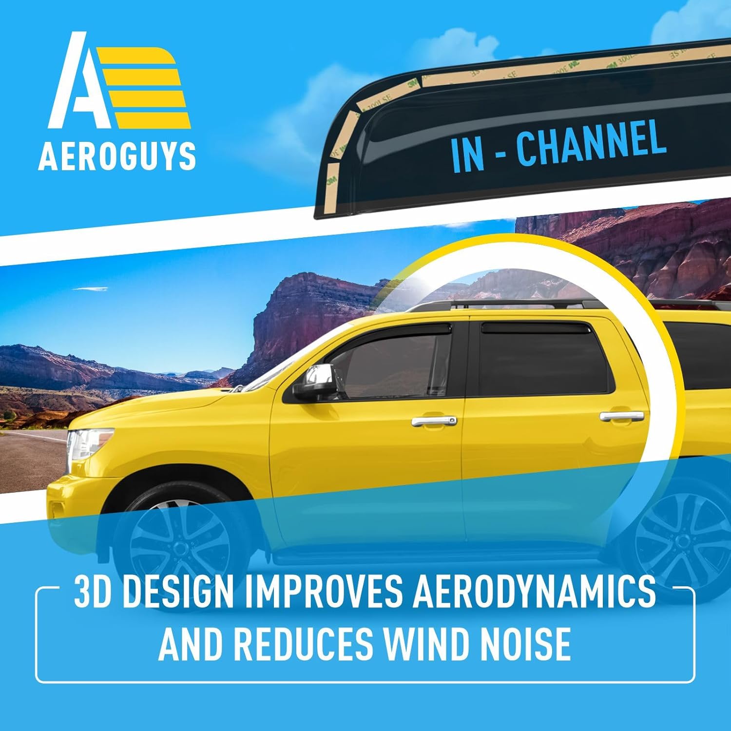 - No Tools Needed, Quick and Easy Assembly β These rain guards are very easy to fit. IN-CHANNEL INSTALLATION provides perfect fit for your car. Just slip it onto your carβs window and your job is done within minutes. There is no drilling or no tools required. Be sure that AEROGUYS window deflectors are water resistant, sun protective and will not bend, break or crack regardless of the weather conditions.