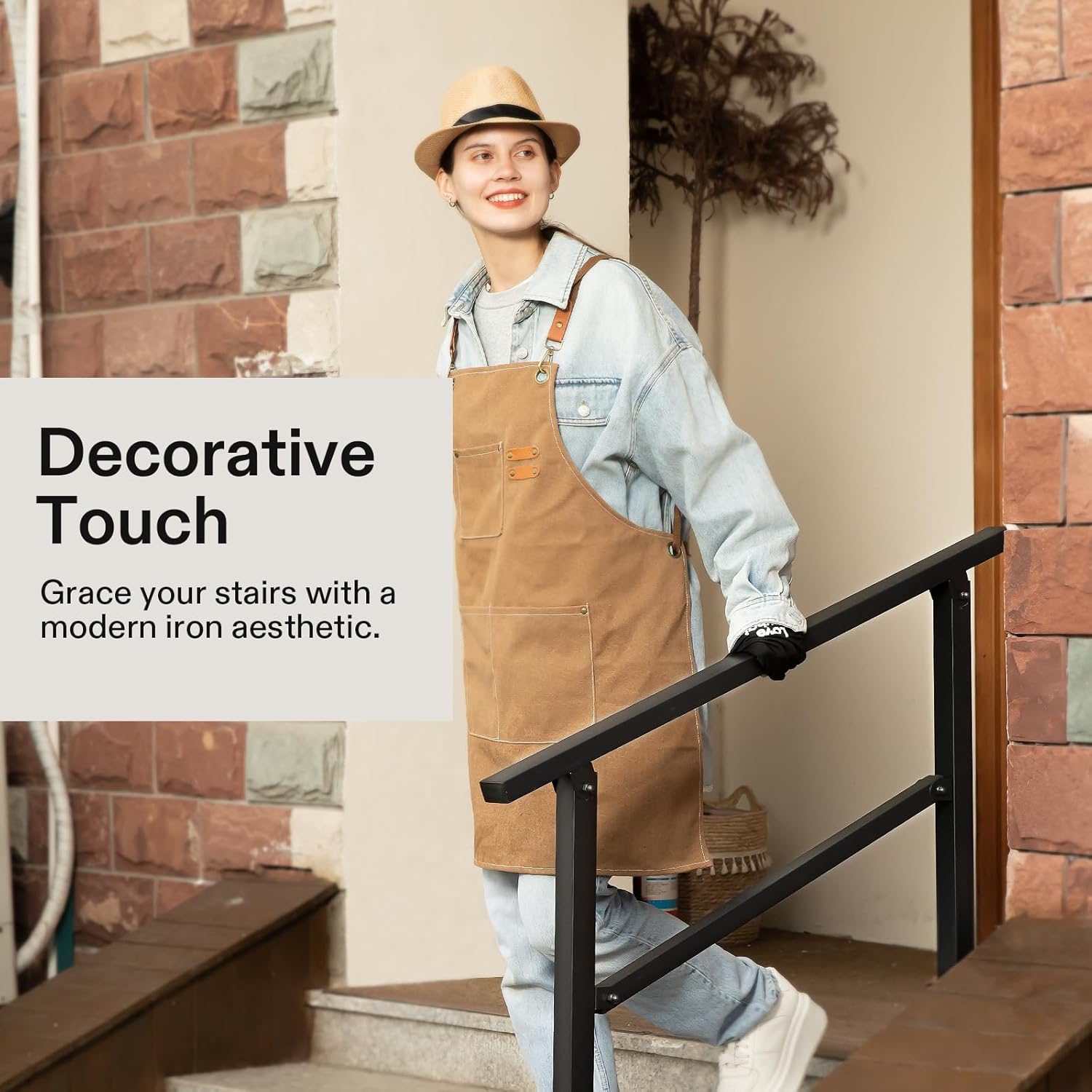 - Sturdy & Durable: Made of high-quality iron for stability and durability, this handrail is capable of withstanding harsh outdoor conditions, including rain and snow; Thick black powder coating reduces chance of peeling off, rust, scratches, and discoloration, also making the railing easy to maintain and clean