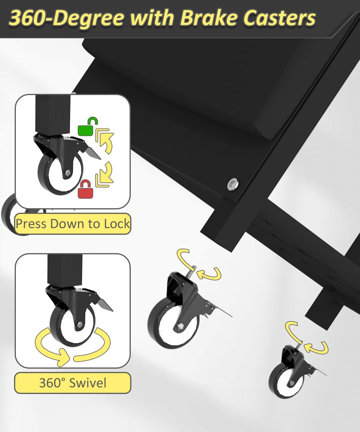 - Robust & Practical Materials: This rolling storage cart is equipped with 360-Degree with Brake Casters. βIt is made of heavy-duty steel tubing with a black powder-coated finish for durability and a total load capacity of 500 lbs. Thick oxford cloth bag is waterproof, not easy to scratch, 3 sizes of pocket opening to meet different tool size placement needs.