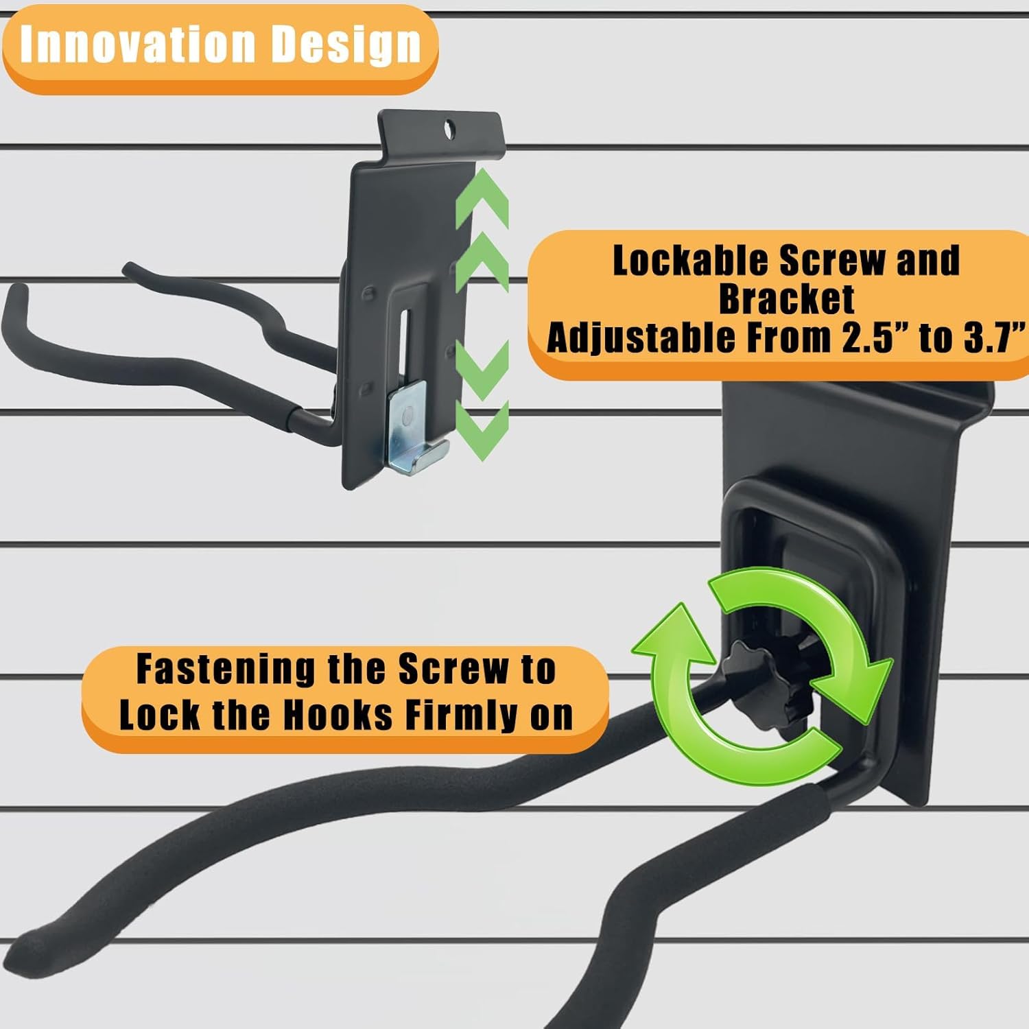 - Innovation Design: Juformin weed eater rack comes with an adjustable screw and bracket assembly, so that it will fit most types and sizes of slatwall by adjusting the bracket space, and provides firmer supporting by fastening the lockable screw
