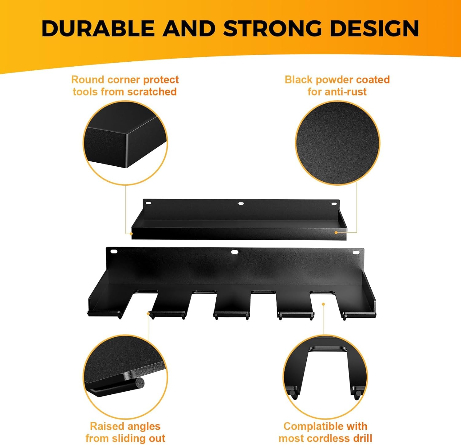 - High Loading Capacity: Our power tool organizer are formed integrally and not easy to break. Sturdy and stead, high quality soild steel construction, loads up to100lbs. And our racks with anti-slip tail details