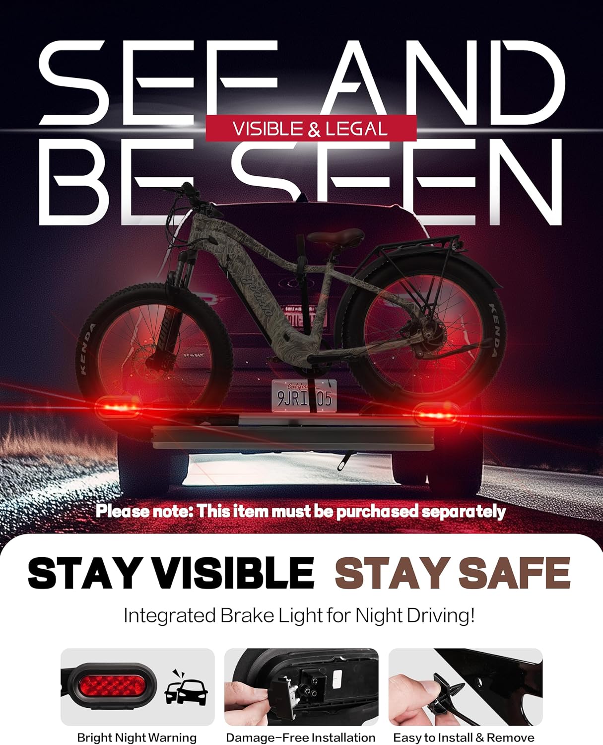 - 100 LB TOTAL CAPACITY: Built for durability and strength, this bike rack boasts an impressive 100lbs capacity, securely accommodating heavier electric bikes or multiple conventional bicycles with ease. Trust in its robust construction for reliable, strain-free transportation.