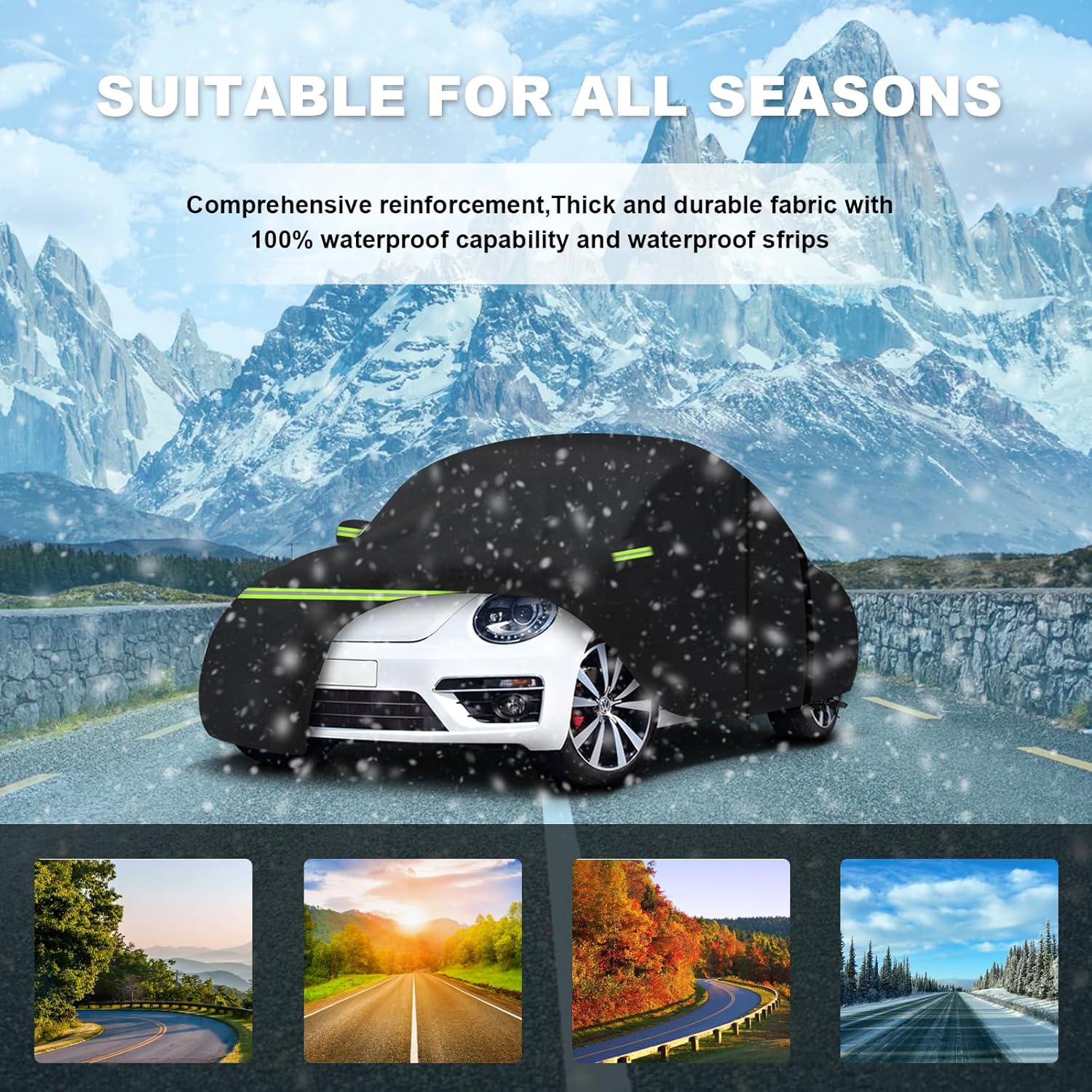 - 【All Weather Car Cover】: The car cover is specially designed for your car to provide comprehensive protection for your car. Protect it from the four seasons of spring, summer, autumn and winter, such as dust, snow, industrial pollution, scratches, bird droppings, leaves, pollen, acid rain , ultraviolet rays, strong sunlight, heavy rain, etc.