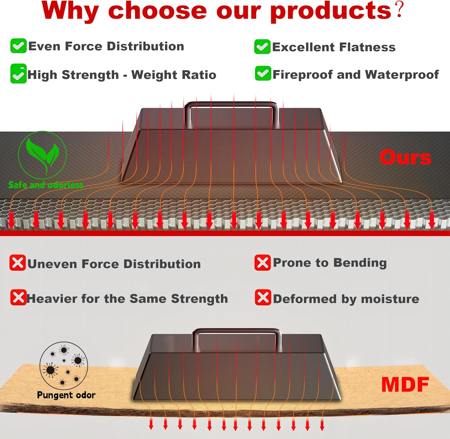 - NOTE: The honeycomb structure has many closed or semi-closed small spaces. When a heavy object is placed on it, the honeycomb's air compression noise indicates even weight distribution β a sign of advanced load-bearing (harmless and temporary)
