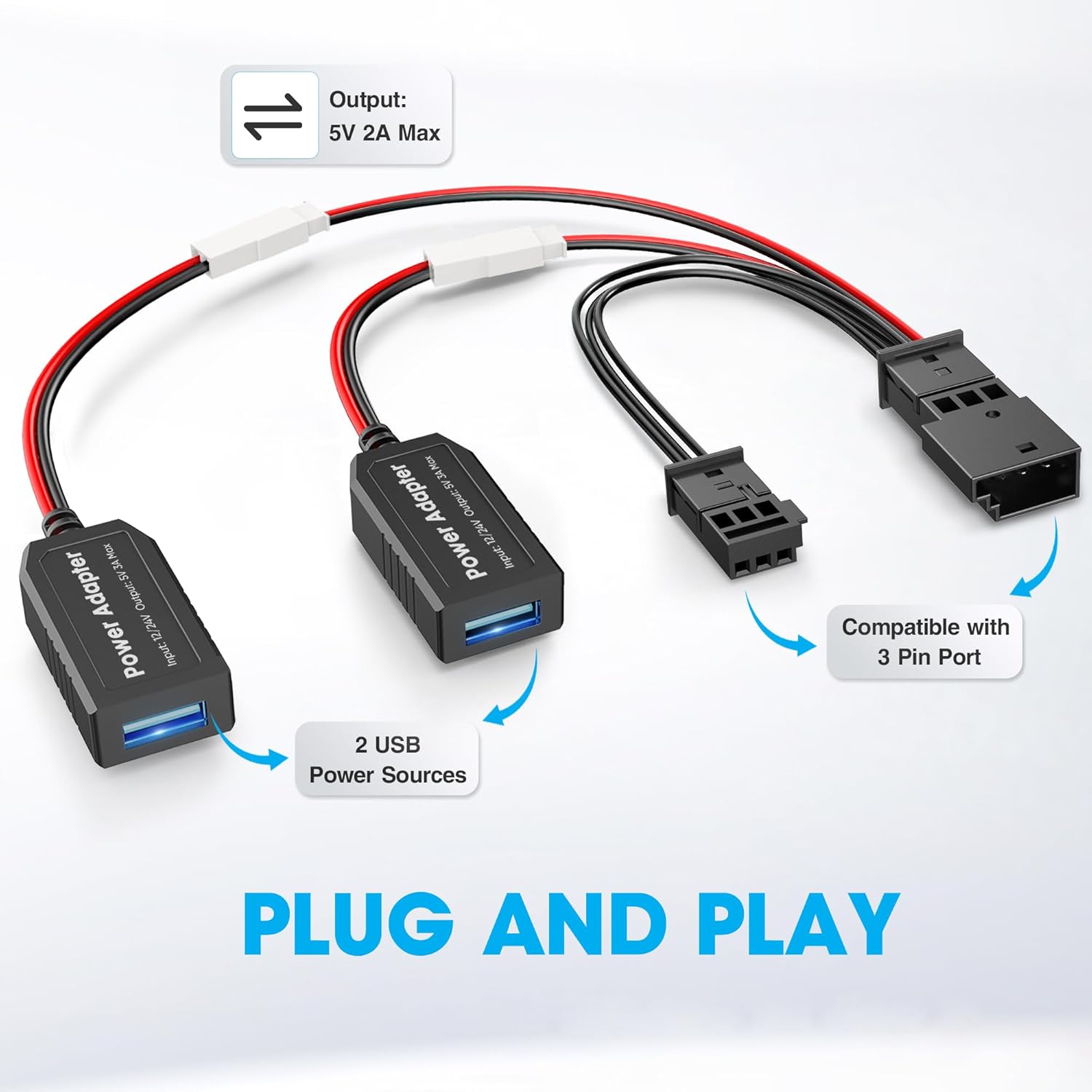 - 【2 USB Outputs for our Dash Cam Power Adapter】Our dashcam power adapter is equipped with two USB adapter output ports, each of which is connected to a 12V to 5V step-down module, and supports up to 5V-3A output. Allow the rain sensor to power two devices at the same time, such as dash cam, mirror camera,for Garmin GPS, e-dog, cell phone charging station with wireless charging function, and so on.