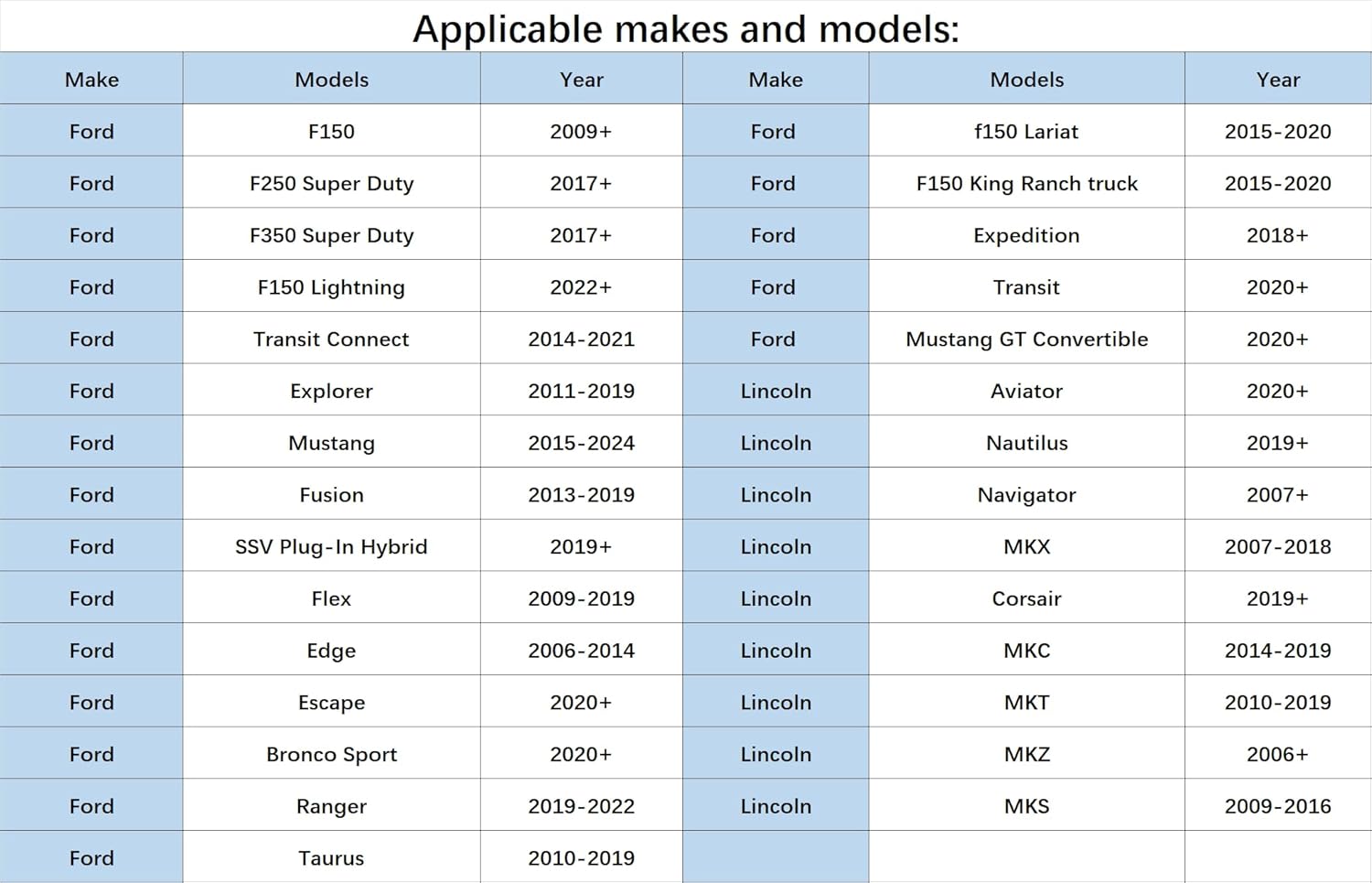 - 【Dashcam Power Adapter (3Pin Type D) Applicable Car Models】 This dash cam power adapter is suitable for Ford : F150/F250/350 Super Duty/F-150 Lightning/Transit Connect/Expedition/Explorer/Mustang/Fusion/SSV Plug-In Hybrid/Flex/Edge/Escape/Bronco Sport/Ranger/Taurus/Fusion Lincoln : Aviator/Nautilus/Navigator/MKX/Corsair/MKC/MKT/MKZ/MKS, and etc. Vehicle must be equipped with rain sensor, if you don't find your car model, please search in the detailed model list.