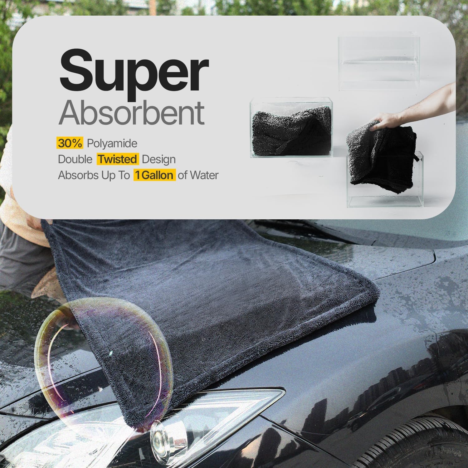 - 6X ABSOPRTION POWER: Ultra-absorbent microfiber towel with twisted-loop technology and 30% polyamide absorbs 6x its weight for efficient, streak-free drying - ideal for avoiding swirls and water spots