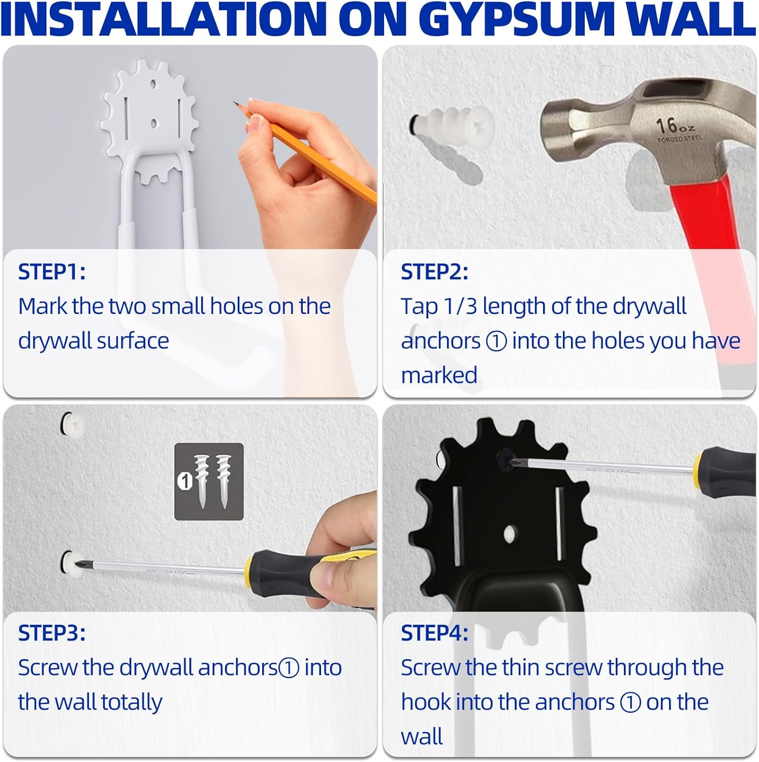 - Multiple Installation Modes - Suitable for different walls, 2 kind of screws and anchors can suitable for plaster walls, wooden, brick or concrete walls, and simply with a drill, hammer and screwdriver.