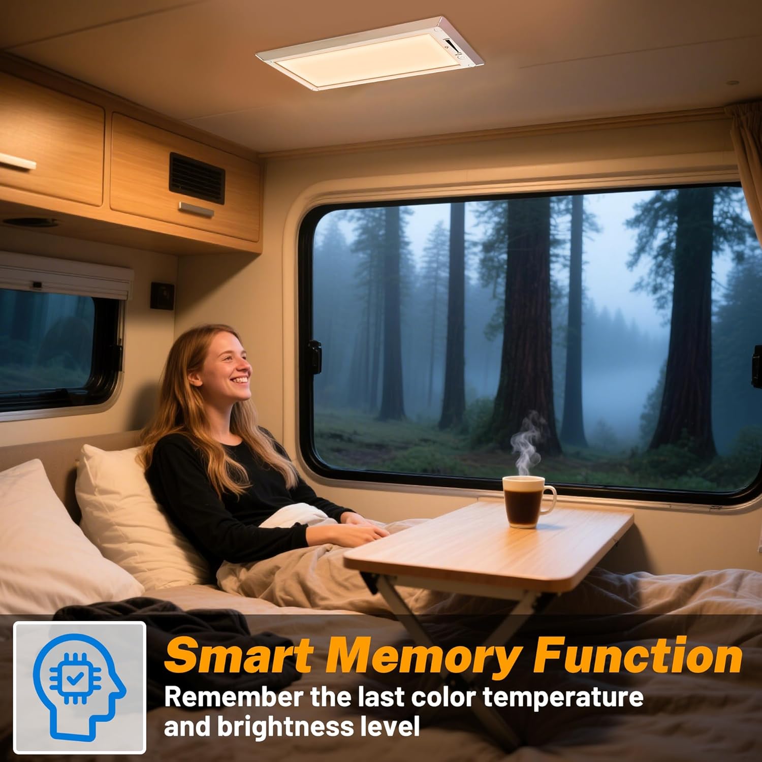 • Sleek Stylish Design&Memory Function:The RV ceiling light has an Ultra-Thin design, measuring 5.5*11.8*0.5in, with a sleek ABS silver shell that exudes a modern and minimalist aesthetic.The RV ceiling light fixtures feature smart memory function, seamlessly restoring your chosen color temperature and brightness settings every time they are turned on.Say goodbye to the hassle of readjusting lights every time you turn them on, Saving Your Precious time And Energy For The Adventures That Await.