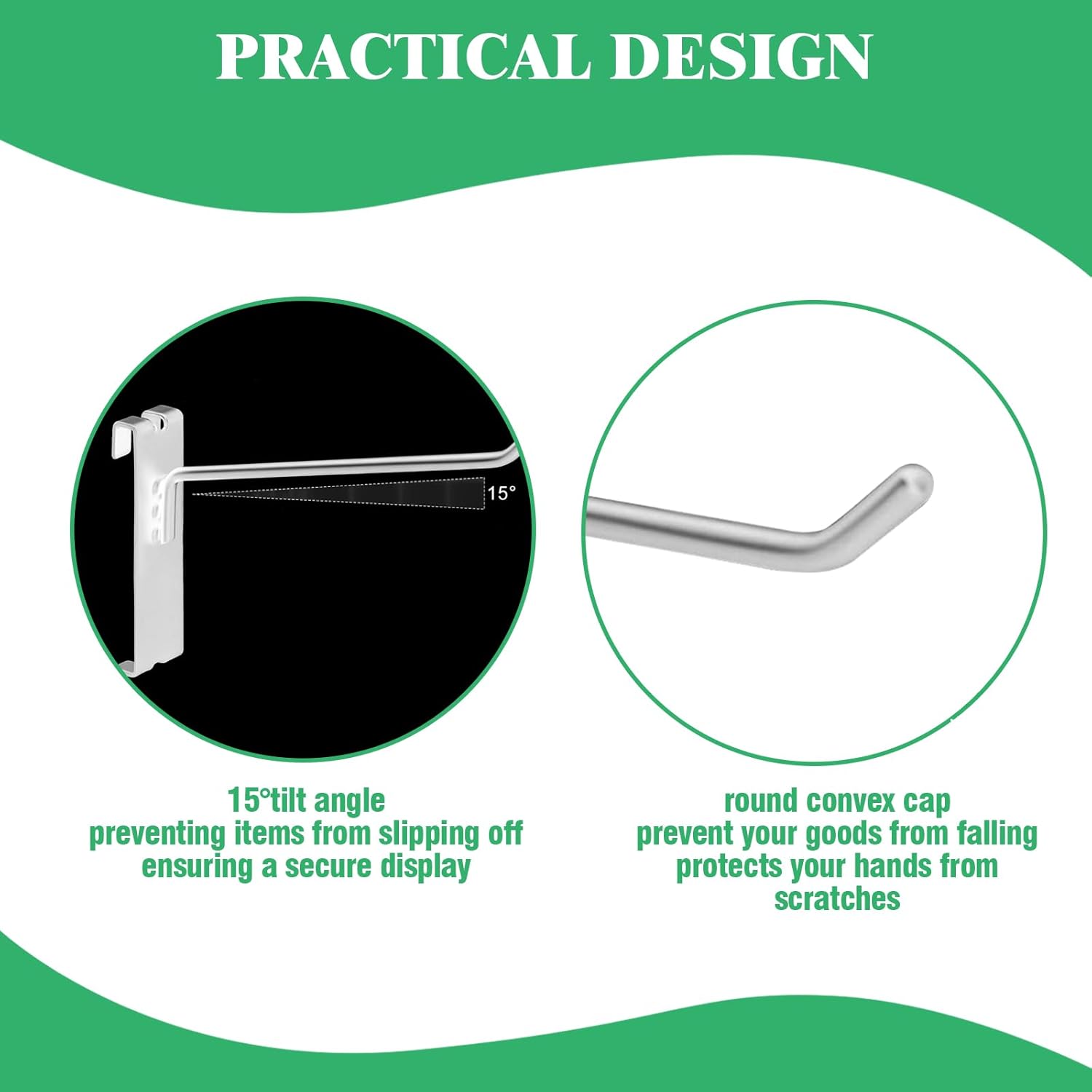 - [Practical Design] Featured a 15°tilt angle, the grid hooks prevent items from slipping off and and adjust in an orderly manner, which can help you organize all of your retail and household needs that you may have.Round convex cap prevent your goods from falling and protects your hands from scratches.