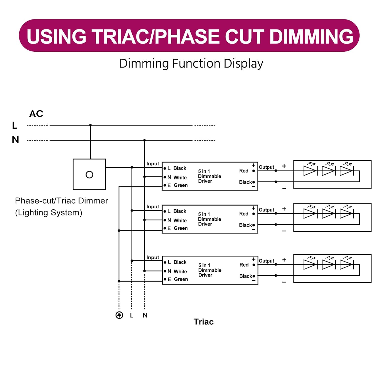 - 5-in-1 Forward and Reverse Phase Dimming: ELV / MLV / TRIAC / 0-10V / 1-10V / 10V PWM / Potentiometer.Versatile driver for most high-performance dimming applications: The Adaptive Pro 5-in-1 dimmable Class 2 drivers are designed to operate with any standard MLV / ELV / Incandescent TRIAC (forward phase) dimmer switch or can also be used with secondary side controls systems. Used commonly with Lutron and Leviton receivers and controls for secondary side dimming.