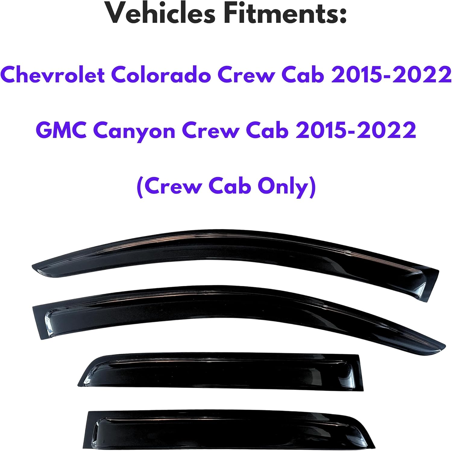 - 【Perfect Fit】KPY window visors rain guards vent deflectors compatible with Chevrolet/Chevy Colorado Crew Cab 2015 2016 2017 2018 2019 2020 2021 2022, GMC Canyon Crew Cab 2015 2016 2017 2018 2019 2020 2021 2022