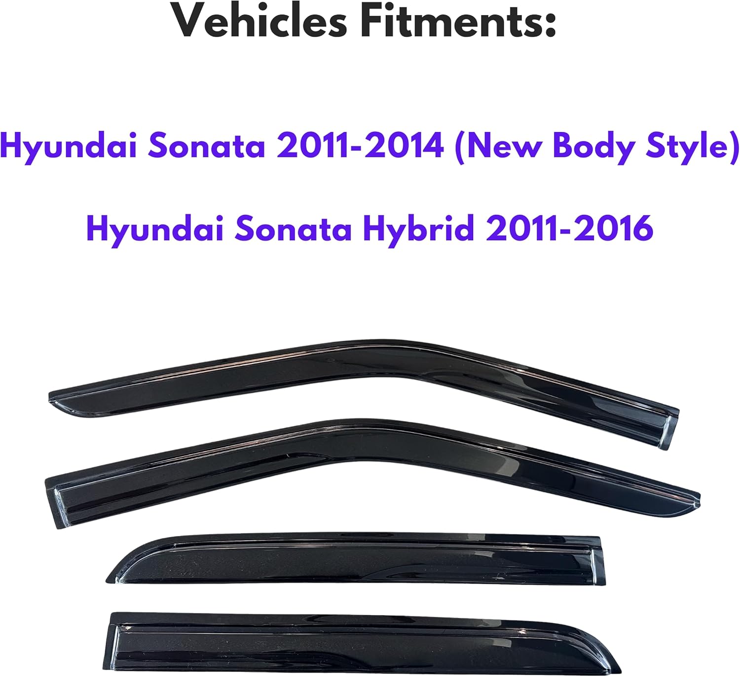 - 【Perfect Fit】KPY window visors rain guards vent deflectors compatible with Hyundai Sonata 2011 2012 2013 2014 (New Body Style), Sonata Hybrid 2011 2012 2013 2014 2015 2016 (Mugen Style)